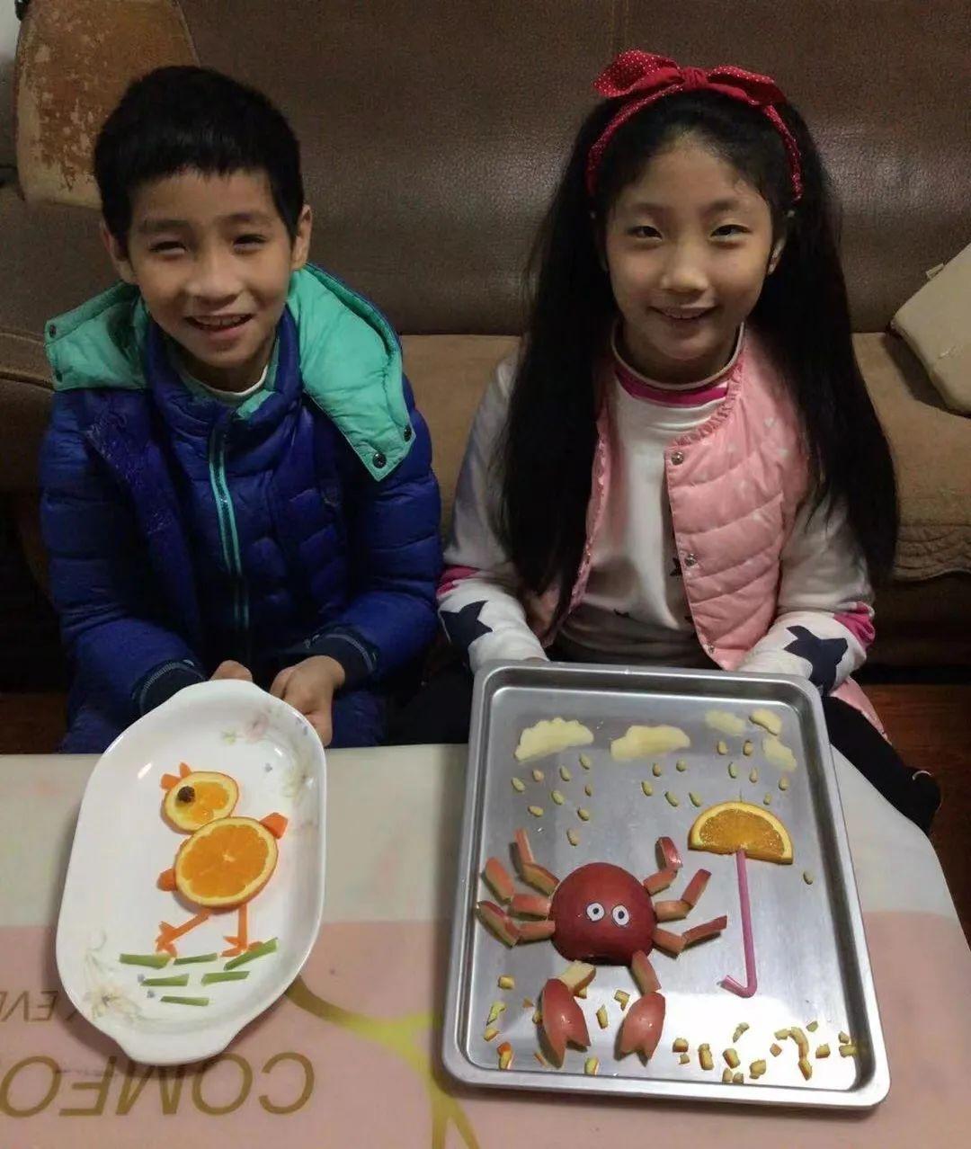 同学们纷纷一展厨艺,呈上一道道精美的水果拼盘和美味佳肴。