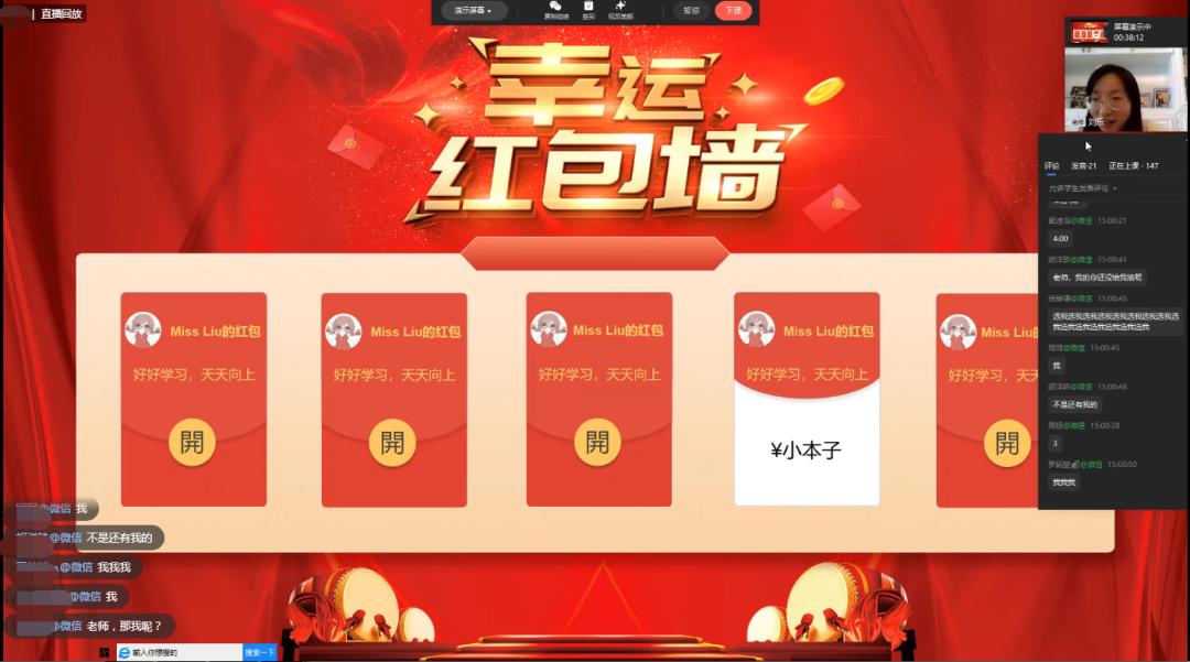 并在课中随机砸彩蛋、拆红包,孩子们的云课堂,既有紧张有趣的学习,又有轻松活泼的游戏,保障了孩子们积极、高效的在线学习。