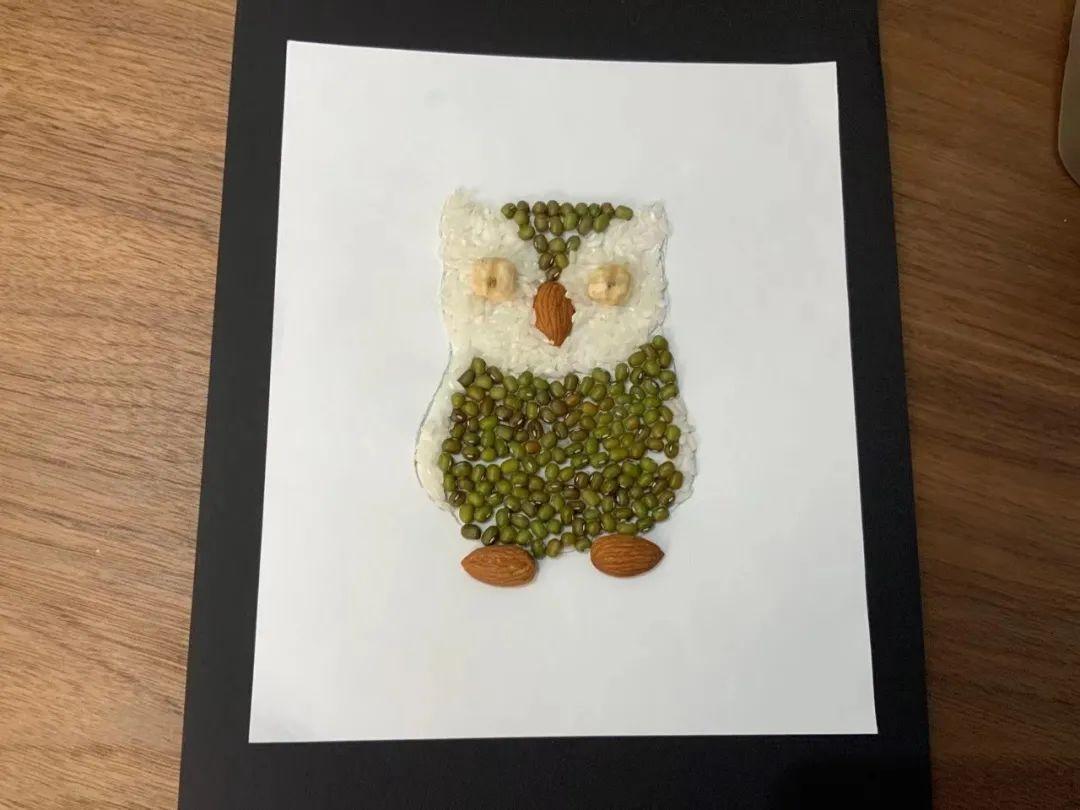 ■第三步:来吧,展示吧!实验已经进行了一周了,赶紧视频连线让大家看看成果:“我的已经发芽了”“我的种子贴画猫头鹰可爱吧?”
