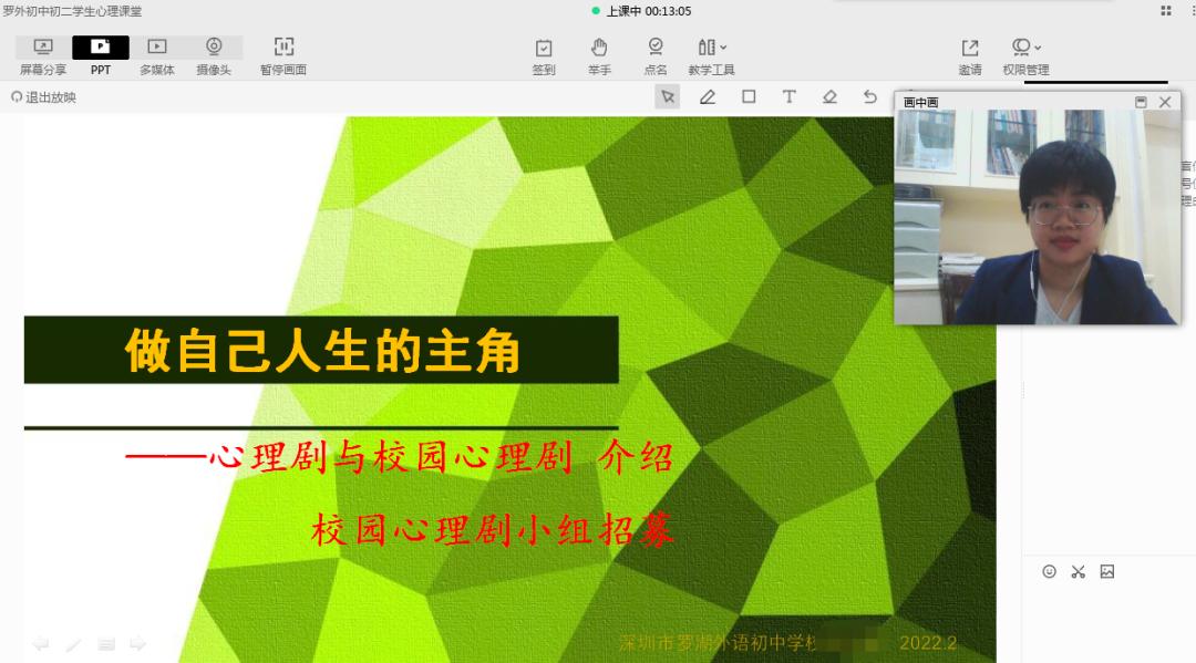 罗湖外语初中学校针对不同年级学生心理特点和需求,分别开设每周一节心理健康网络课,以增进与学生的日常心理联结。