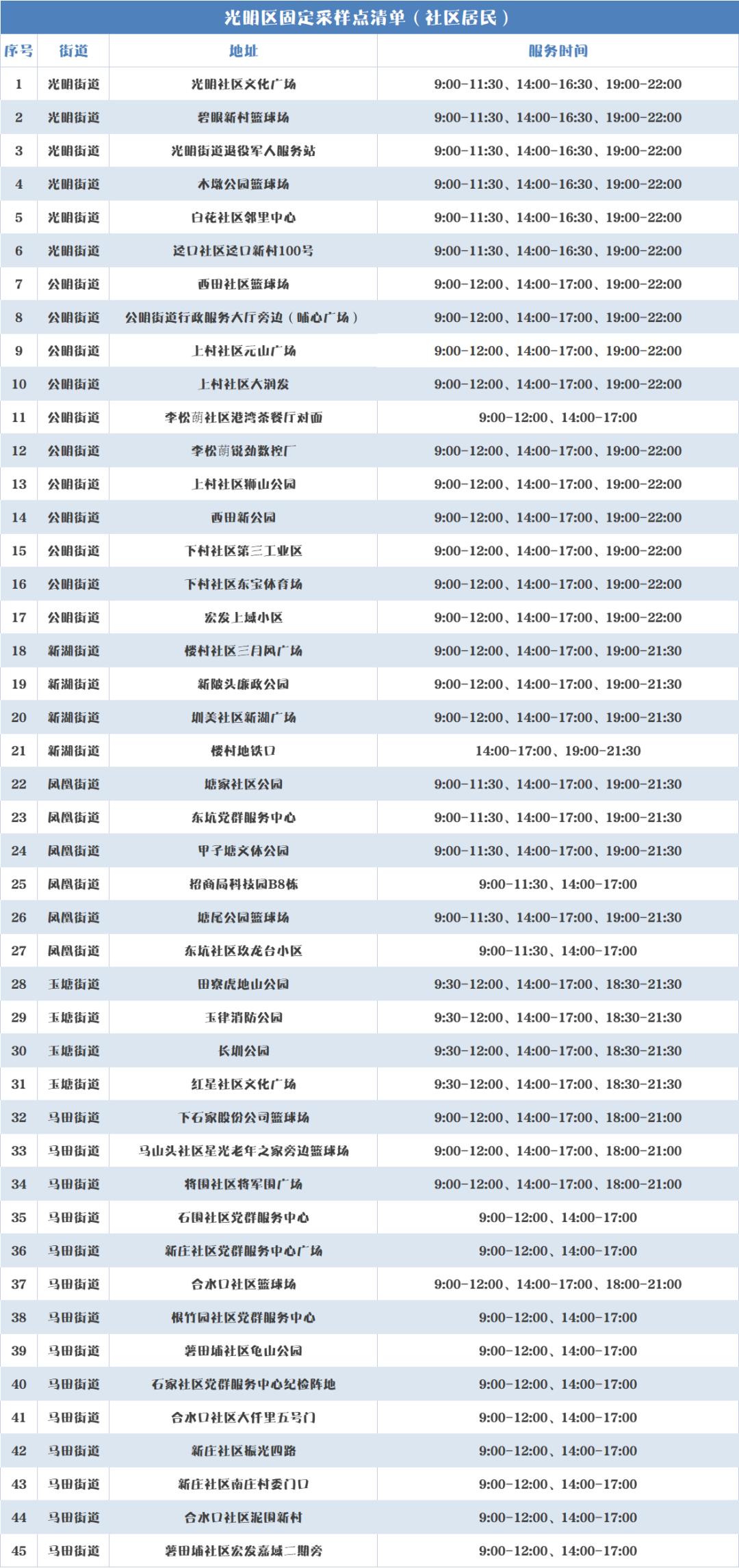 光明区免费核酸采样点汇总已更新