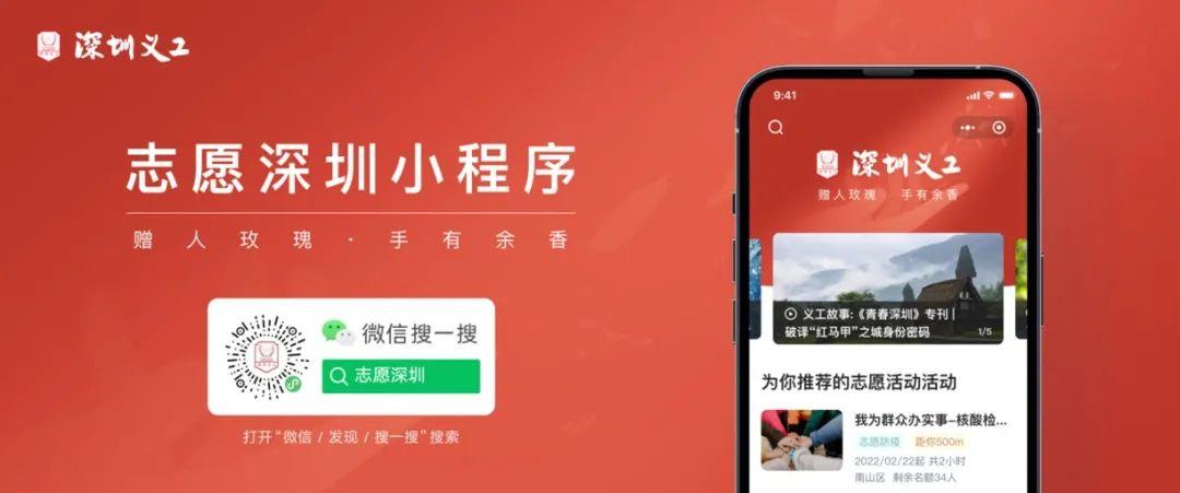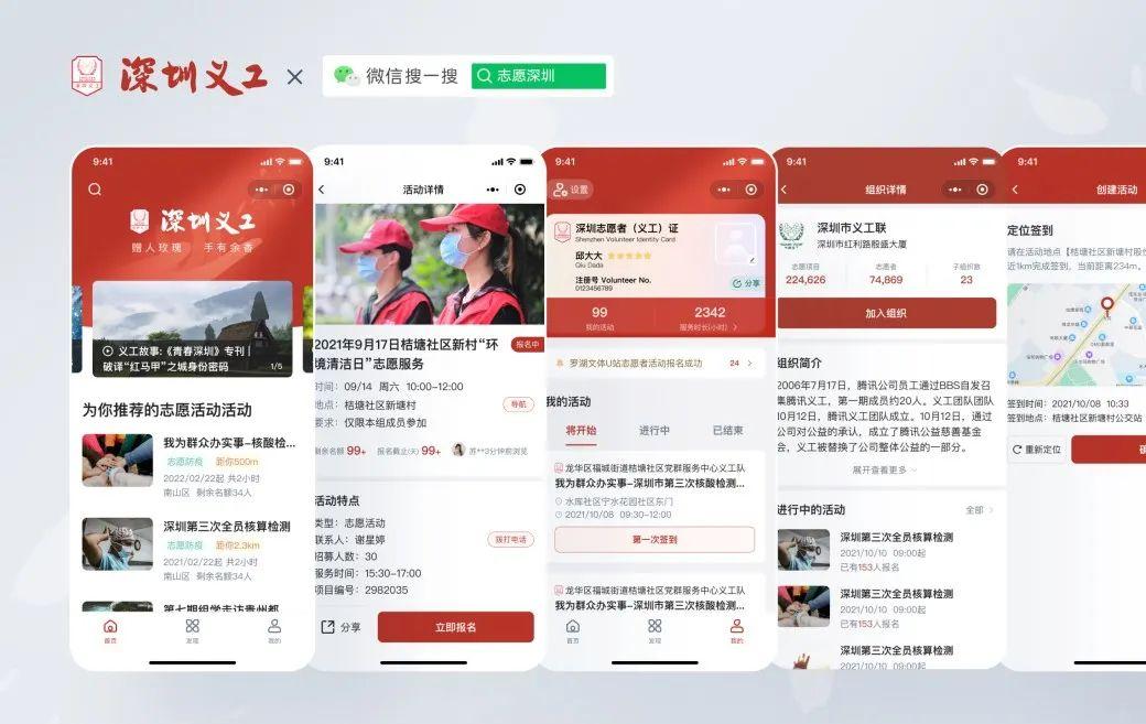 志愿者们可以通过微信搜一搜“志愿深圳”进入小程序,实现全面的移动化数字化与信息化的交互体验。