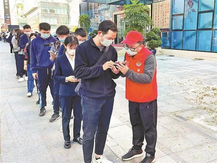 和陈小娟的采访时间约在晚上十点,“不好意思,今天一直在深圳北站服务,晚上六点又收到通知,赶往石岩支援。”连轴转的工作节奏,使她的声音听起来略显疲惫,她坦言这段时间压力很大。“我主要负责统筹星城核酸检测点工作,协调早、中、晚3个班次服务的志愿者,除此以外,我还要根据需要,带着我们的先锋队员四处支援。工作即使结束得早,脑子也都想着第二天的统筹协调,忙完之后往往已是十一二点。”
