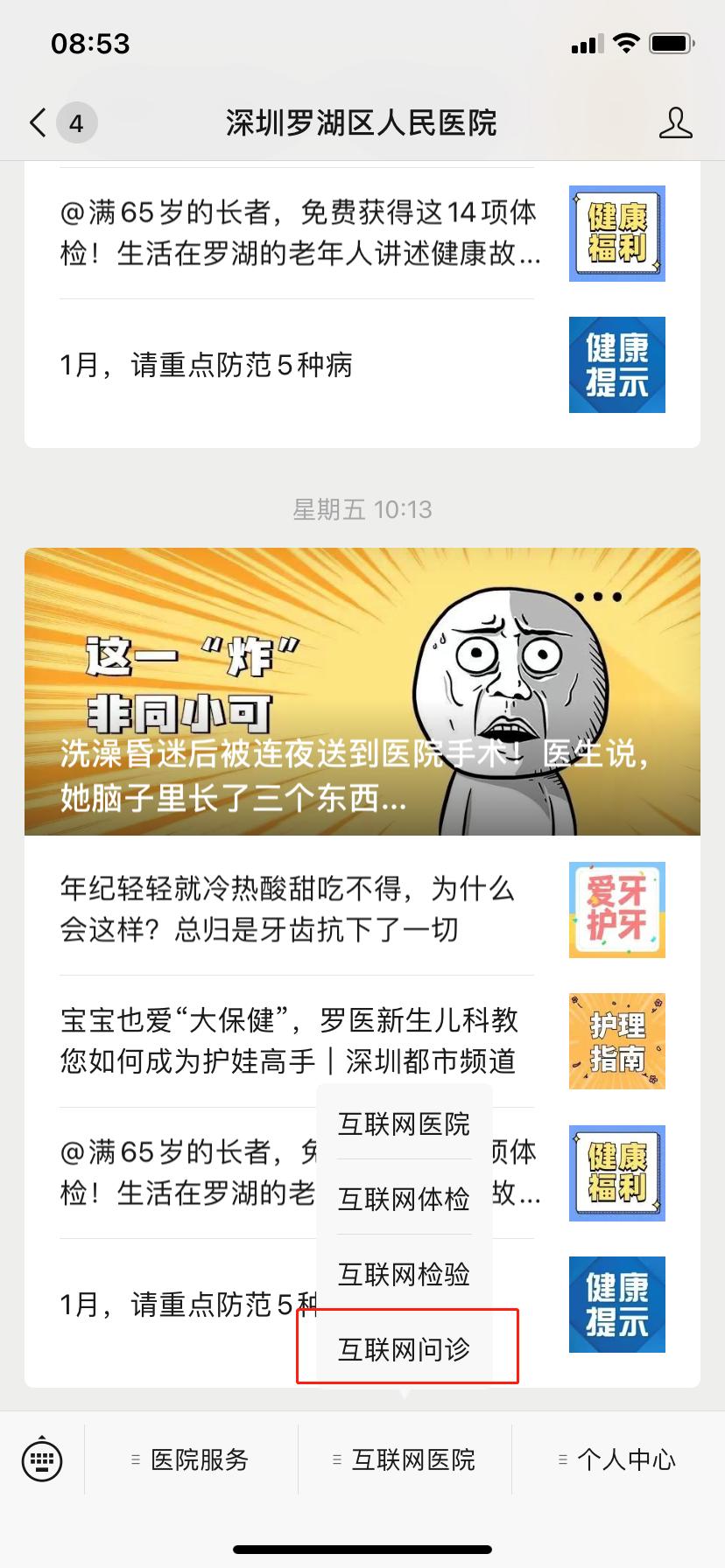 找到下方菜单【互联网问诊】