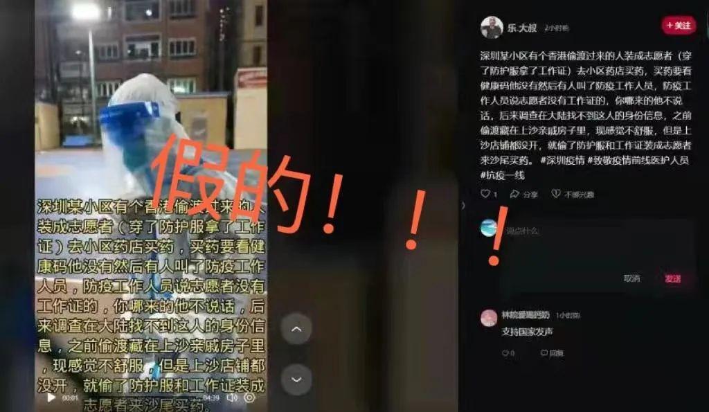 3月4日晚间,深圳市公安局福田分局官方微博@福田警察发布情况通报。通报称,网络平台出现该“消息”后,警方立即开展调查。经查,该网传信息不属实。其中穿防护服的人员为临近小区住户,非偷渡人员。目前,刘某(女,22 岁)因散布谣言扰乱公共秩序,被依法处以行政拘留处罚。