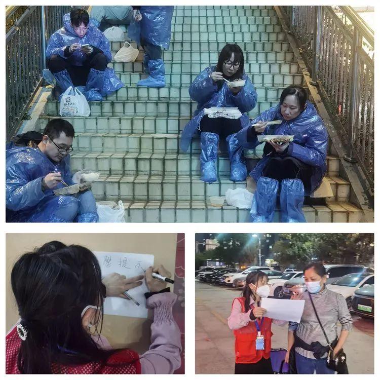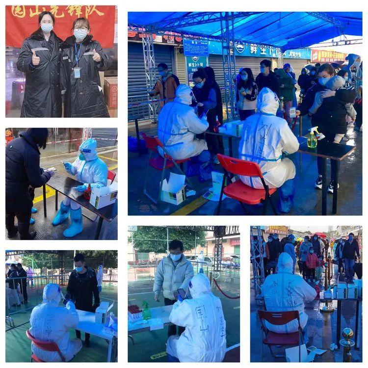 核酸检测组到达坂田的第一个任务就是穿起“大白”,戴上护目镜,去封控区协助医护人员开展核酸采样工作。尹单娜同志的一句“我是党员我先上”背后,是寒风雨夜下6天的顽强坚守。作为小组长,在核酸扫码检测、人员排查、运送物资等最艰难的岗位上,随处可见她忙碌疲惫的身影。不仅如此,在支援疫情防控工作期间,为了团队荣誉,她不顾疲惫,见缝插针,利用休息时间紧急处理公务,不让工作因她而积压。刘兰兰同志作为一名预备党员,以党为先,忍痛离爱,凌晨闻令而动,来不及跟熟睡的家人和刚满两岁的双胞胎宝宝告别。当走到封控区确诊住户门前,听到采样医生问她:“你害怕吗?”她双眼不眨,坚定地回答道:“不害怕,反而觉得能为疫情防控出一份力而感到有些自豪”。当组织上询问她已经日夜连续奋战,要不要回家带孩子,她坚定地说:“我不用带孩子,我能坚持!”转身冲进一线,把对孩子的思念深埋心底。