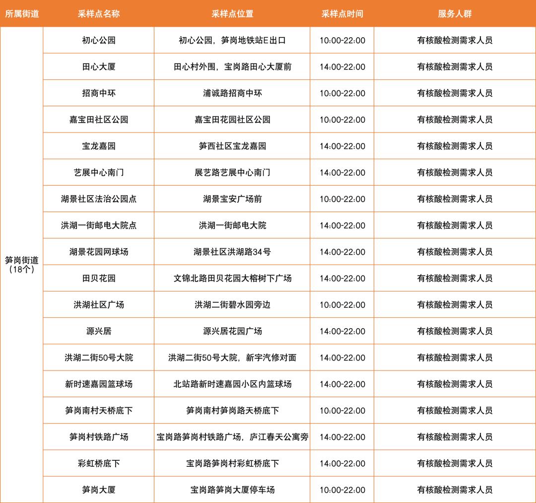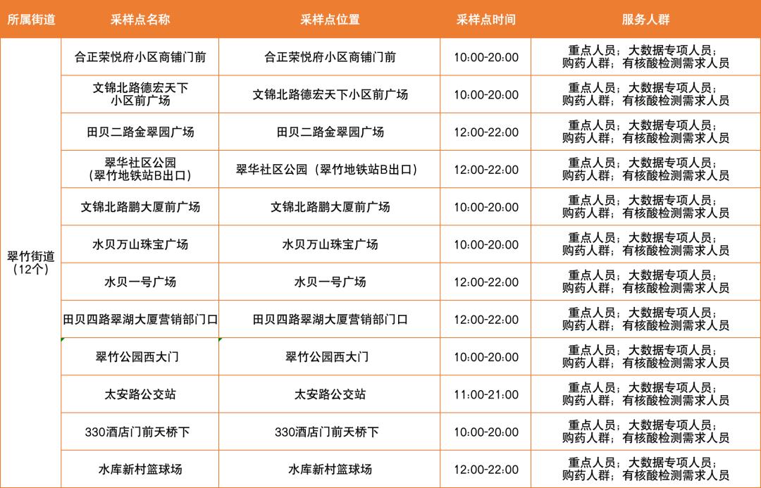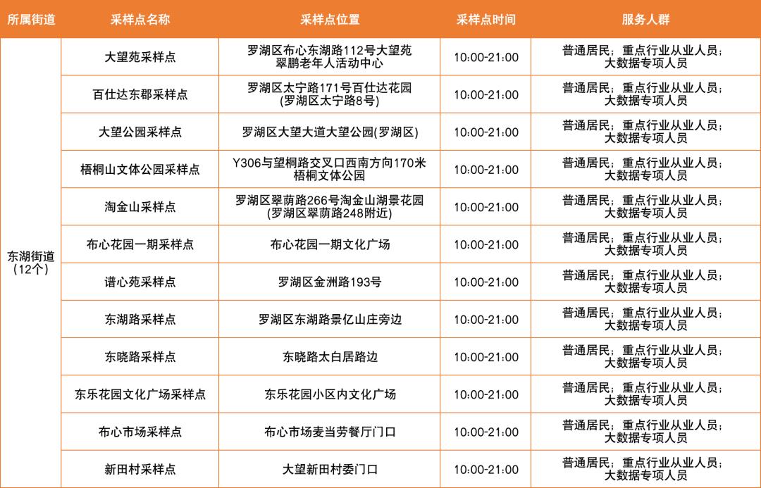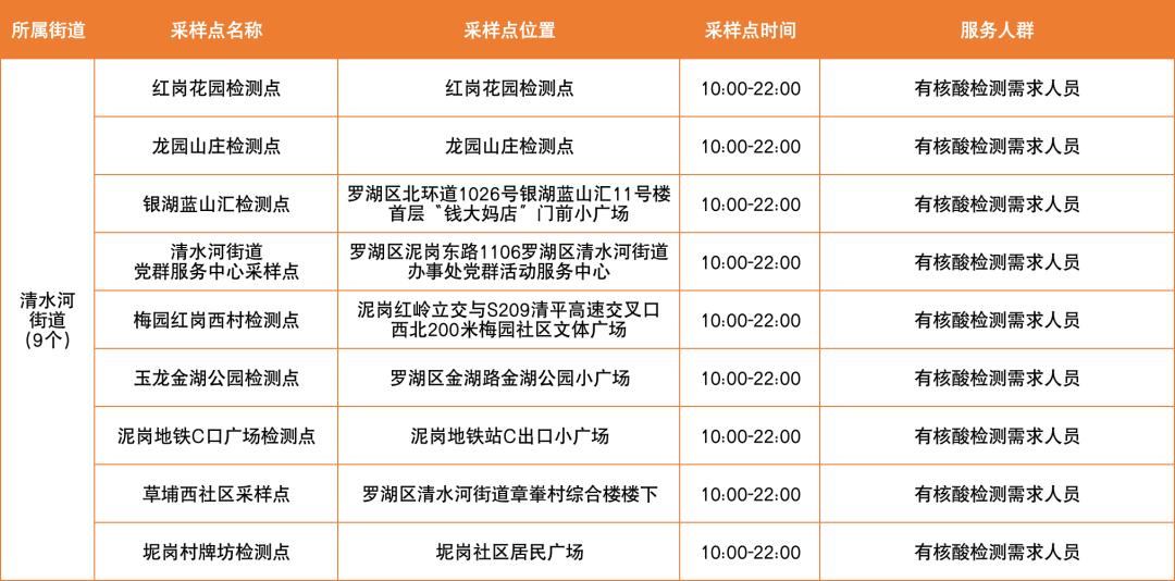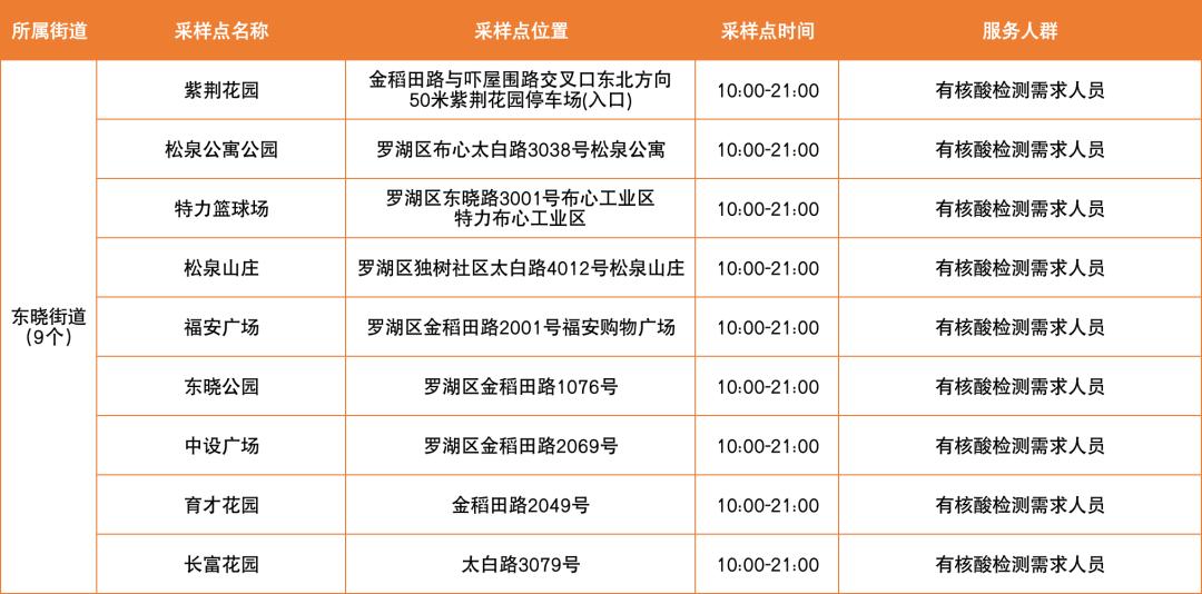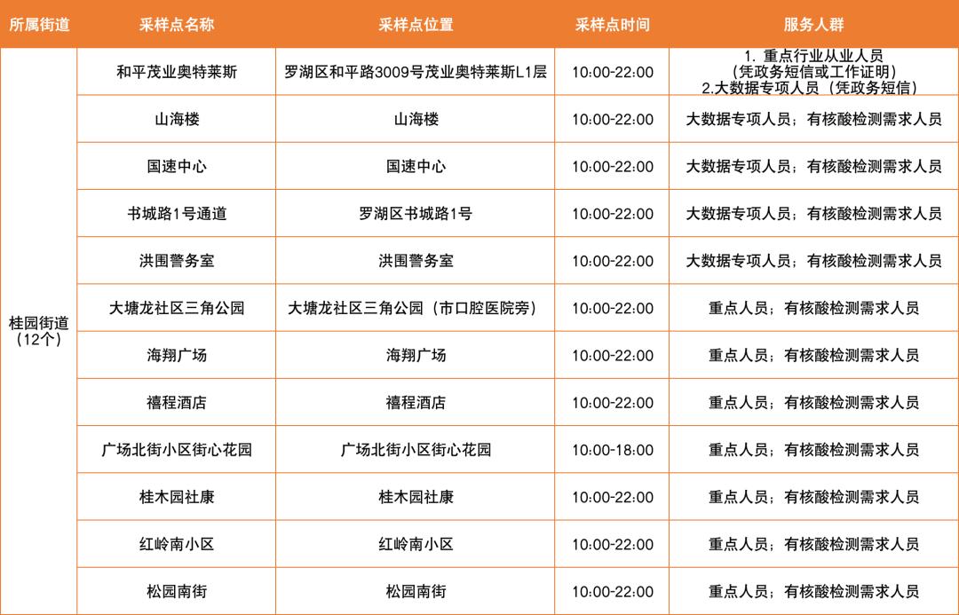 罗湖区设置了以下免费核酸采样点
