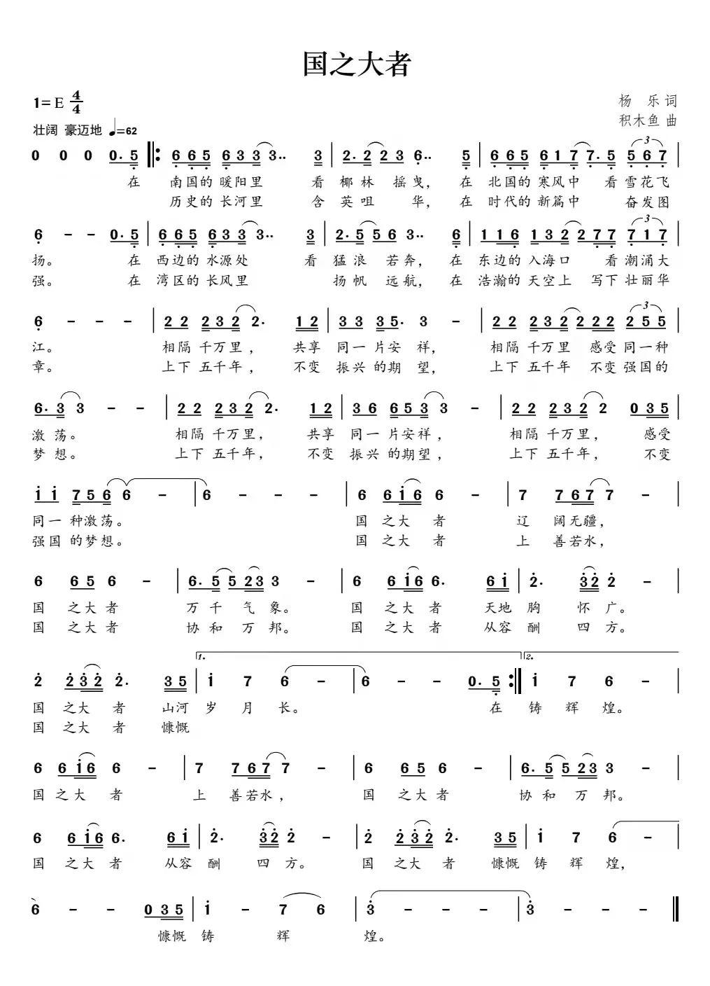习近平总书记指出,当前要立足中华民族伟大复兴战略全局和世界百年未有之大变局,心怀“国之大者”。歌曲《国之大者》创作团队基于此,用浪漫飘逸、豪情万丈的文笔,跌宕起伏、慷慨激昂的旋律,描摹了“大国”之“大”:疆域之大、胸怀之大、气魄之大、担当之大,宣颂了十四亿中华儿女在实现中华民族伟大复兴的"中国梦”进程中,前所未有的壮阔情怀与雍容和悦的大国仪态。