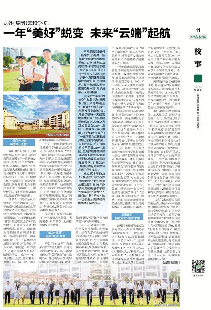 作为龙外(集团)“一主两翼”的重要成员校,云和学校定位为“高质量、未来云端学校”,将全力打造成为美好教育品牌下的创新型卓越学校,争当龙岗西部教育排头兵。