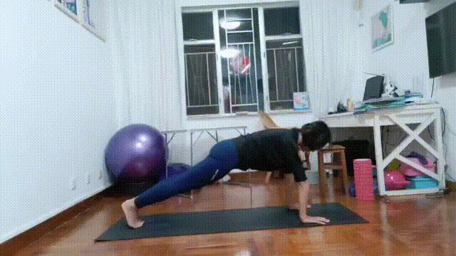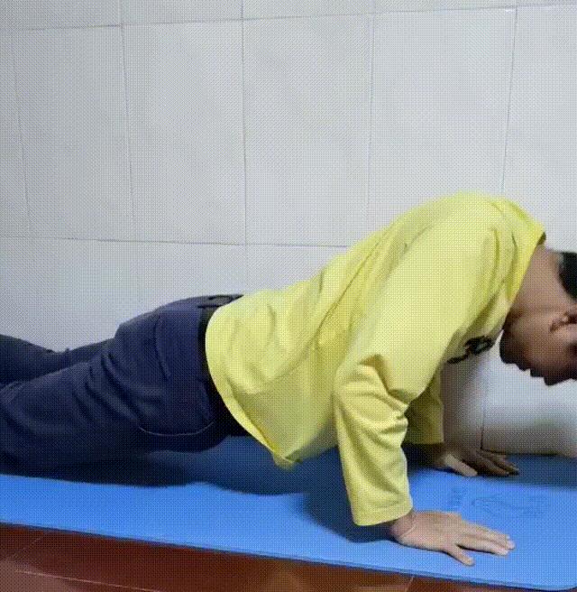 动作要点:躺于垫上,手臂抱于头部两侧,脚底并拢,脚跟靠近臀部,腹肌发力起身,准备时吸气,起身时吐气。动作全程速度不宜过快,频率约为3秒一次。仰卧起坐锻炼腹直肌。