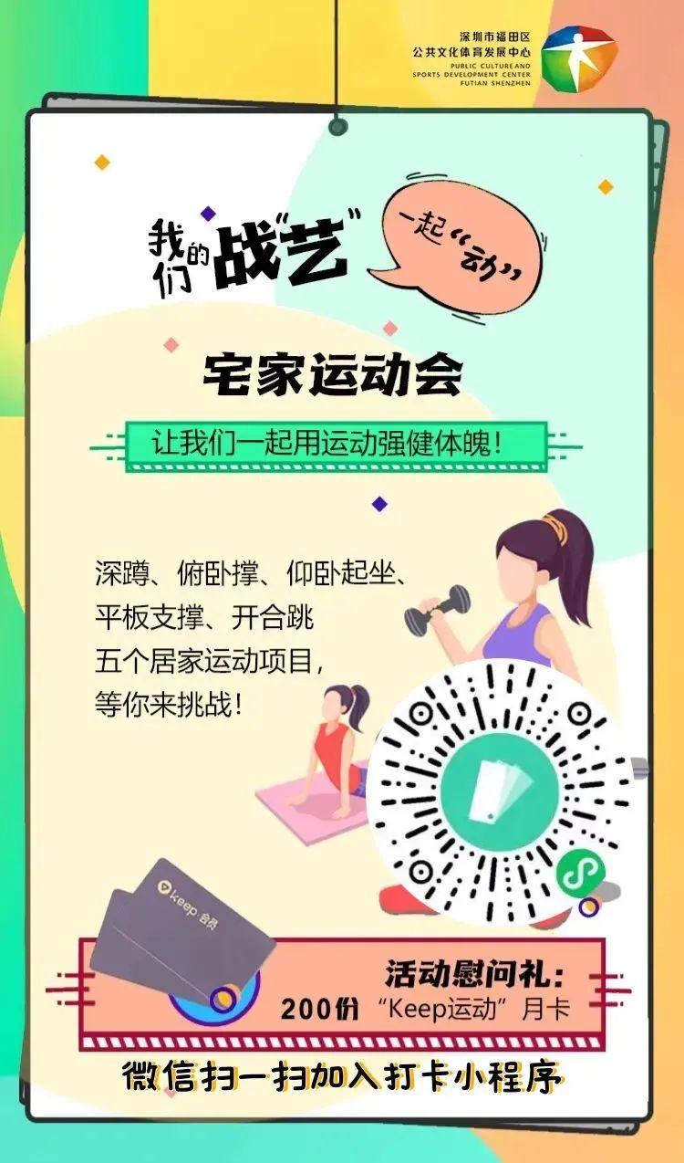 参与方式:进入“小打卡”小程序,加入【我们的战“艺”宅家运动会】圈子,参与活动者每晚12点前,将当天的宅家运动会项目视频上传到圈子,即为打卡成功。(注:每天都须挑战打卡对应运动项目并上传视频才能解锁第二天项目,如错过打卡可在3月8日补打卡一次)