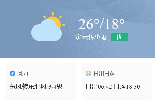 6日我市云量多,沿海、高地和海区有6-7偏东风,夜间有小雨,气温18-26℃。。