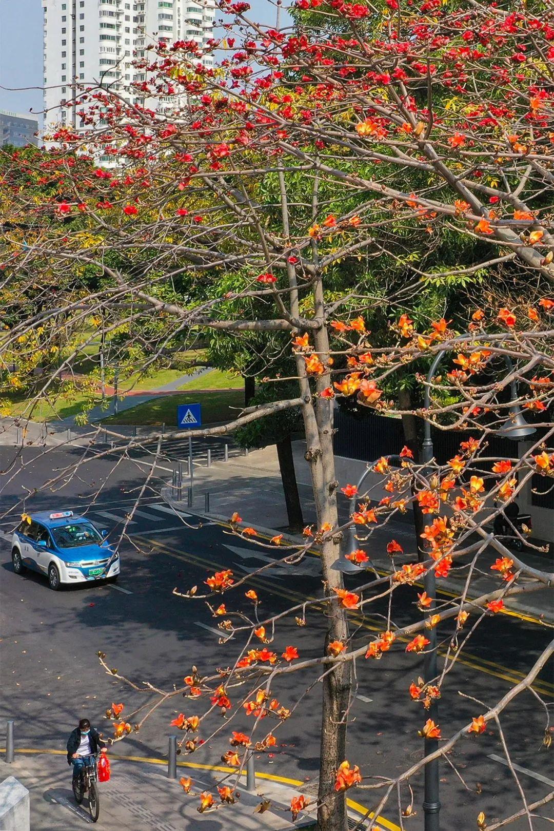 街头巷尾的木棉树开花了