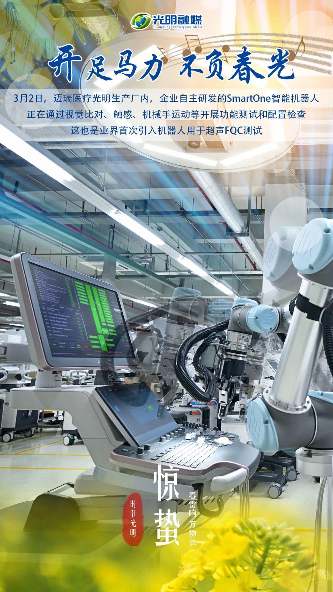 近年来,迈瑞不断提升产线的自动化程度,自主研发的SmartOne智能机器人测试系统,是业界首次引入机器人用于超声FQC测试,它拥有视觉比对、触感、网络连接校验、机械手运动等多项功能系统,可以实现智能化一站式功能测试和配置检查。