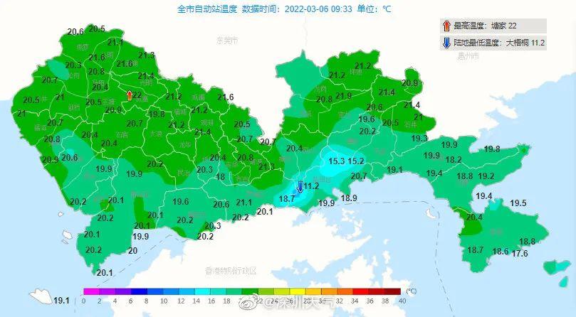 1、预计6日17-20时,我市多云为主,气温20-23℃;偏东风3-4级,沿海、高地和海区最大阵风7级左右;能见度普遍在8-15公里。冷空气影响,风速较大,注意室外物品的加固,户外活动注意做好个人疫情防护工作。深圳市气象台2022年03月06日16时49分发布