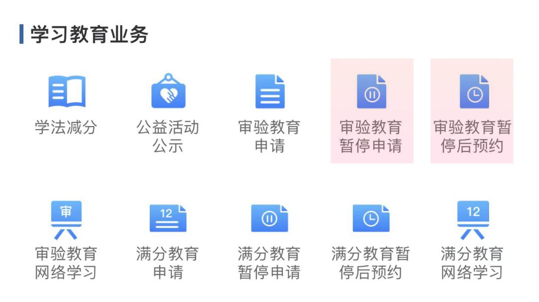 提交暂停申请后需重新预约的,可以在重新预约“审验教育暂停后预约”。