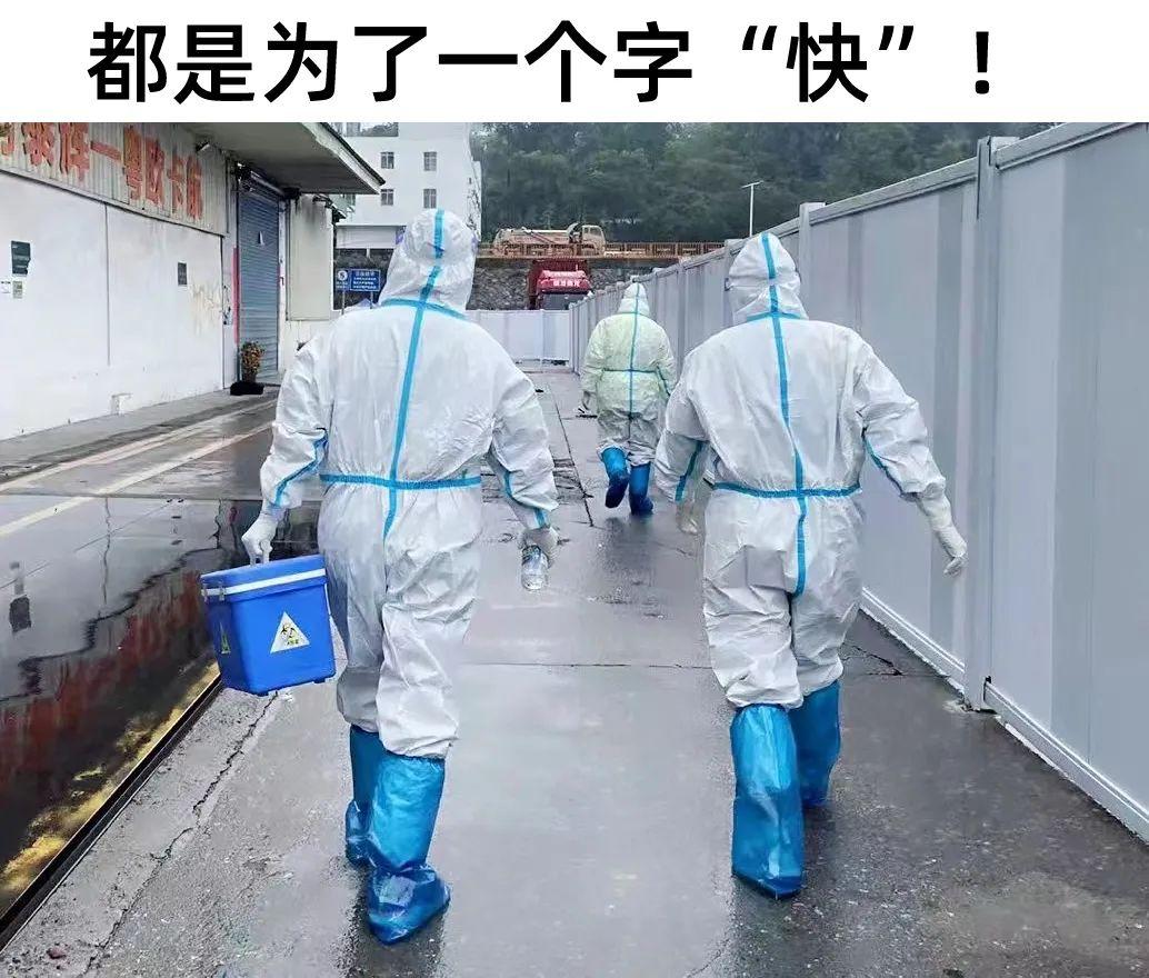 实验室负责人在群里看到“10混1”群内采样队员出发送样的消息后,立马安排接样人员提前下楼到门口等待样品到来,主动把握时间,正是这团队的完美协作让各块工作实现了无缝衔接。