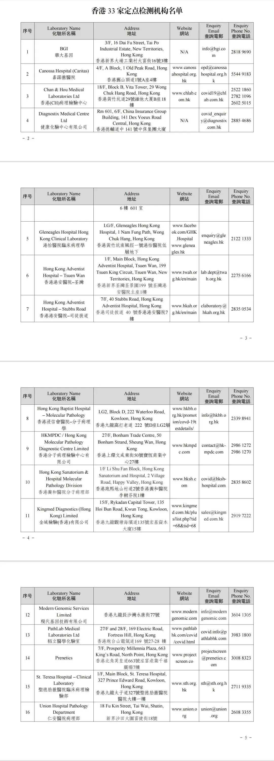 附件:粤港认可的33家香港定点核酸检测机构名单