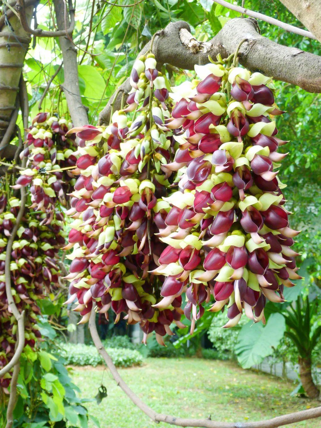 常绿大型木质藤本。总状花序生于老枝或生于叶腋,有花20-30朵,常成束状,花冠白色或带绿白色,或紫色,似禾雀,因此又名“禾雀花”。