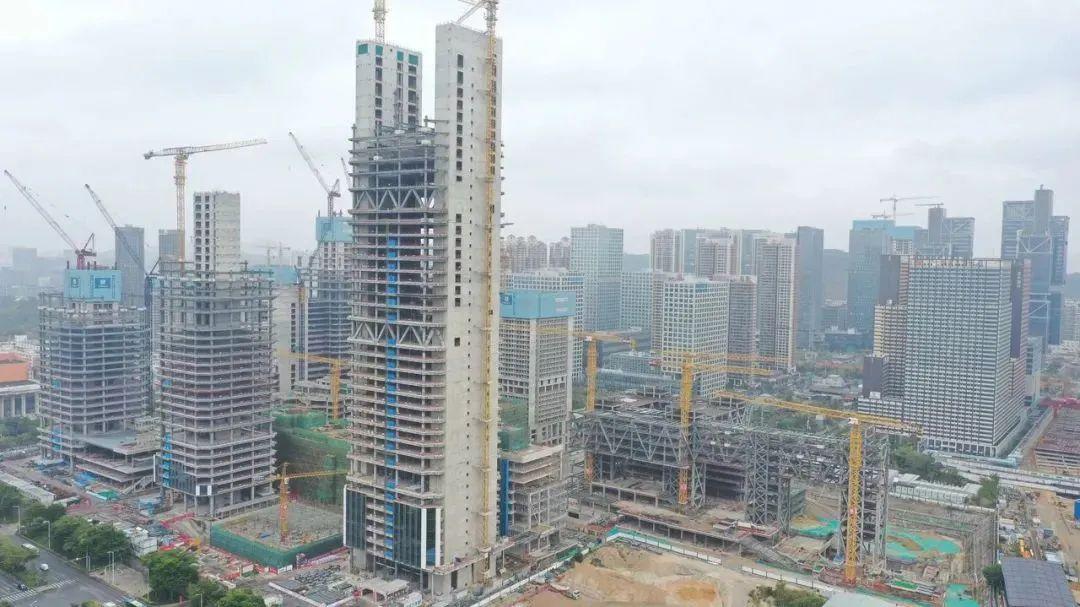 ▲南山科技创新中心(六街坊)项目航拍图,多栋高层建筑的主体结构建设已接近完成,可以一窥项目完工后的宏伟景象。