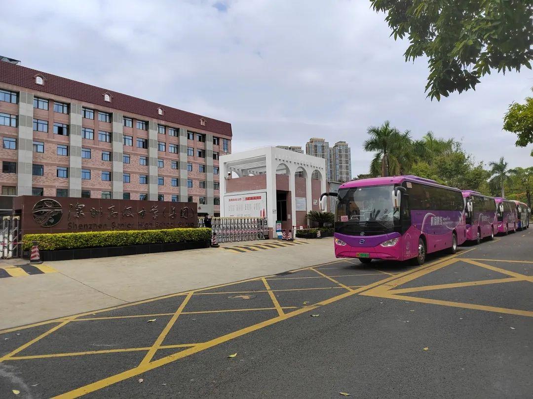 每台车上都为学生备好了免洗手液、一次性胶袋、口罩等防疫物资, 每趟转运结束后,车辆都必须停放在指定停车区域进行消杀通风。