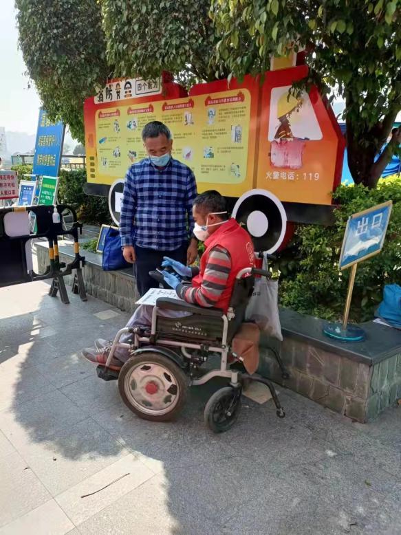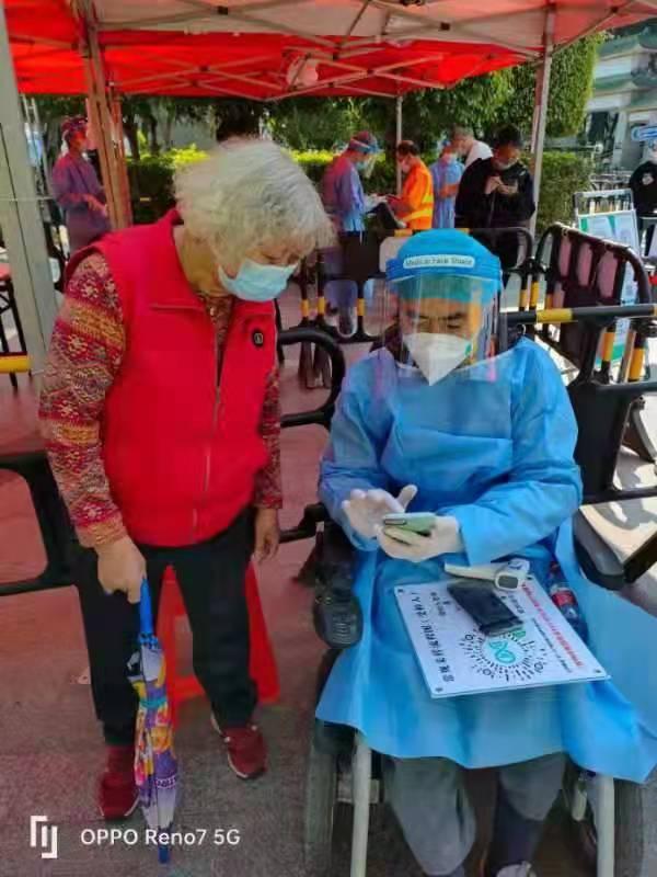 “当听闻小区在招募志愿者,我也马上联系上社区有关负责人,申请参与志愿服务。”自从范大哥注册成为一名正式的志愿者,在街道核酸检测点、疫苗接种点,就经常能看到他坐着轮椅、穿着红马甲为大家指引服务。