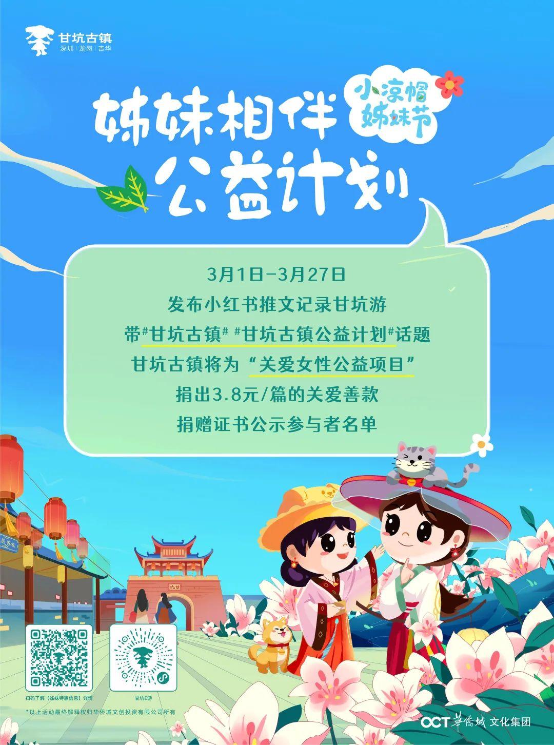 “姐妹齐心,其利断金”,为了展现女性温柔而强大的能量,小凉帽姊妹节期间,甘坑古镇将举办“姊妹相伴·公益计划”,在小红书APP发布姐妹行甘坑游的相关内容,并带有#甘坑古镇# #甘坑古镇公益计划#话题,我们会以每篇3.8元捐出关爱善款。