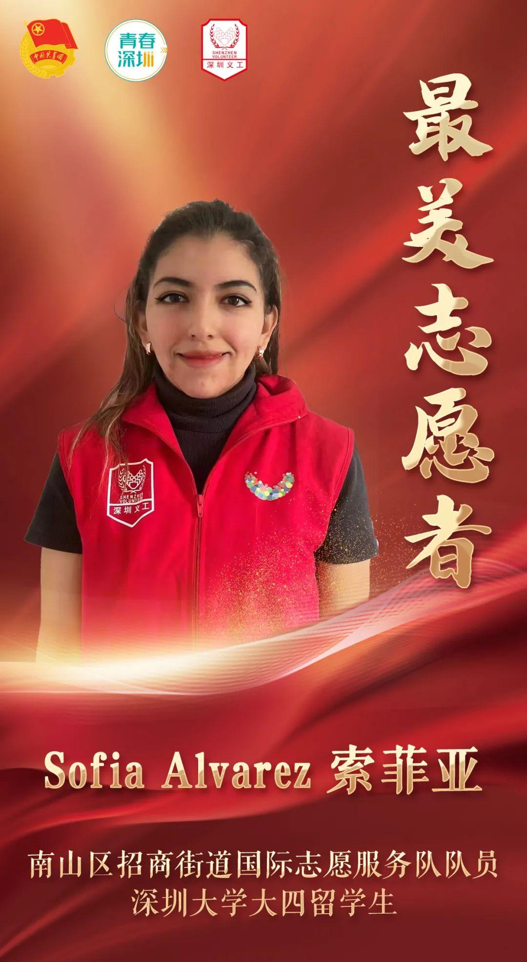 来自墨西哥的Sofia Alvarez(索菲亚)是深圳招商街道最积极的国际志愿者之一,只要有需要,她就毫不犹豫披上“红马甲”、穿上防护服,踊跃加入志愿队伍,随时切换三种语言为市民服务。3月3日,Sofia荣获深圳“最美抗疫志愿者”称号,为深圳志愿者之城增添国际化色彩,也成为抗疫时期暖心的外援力。
