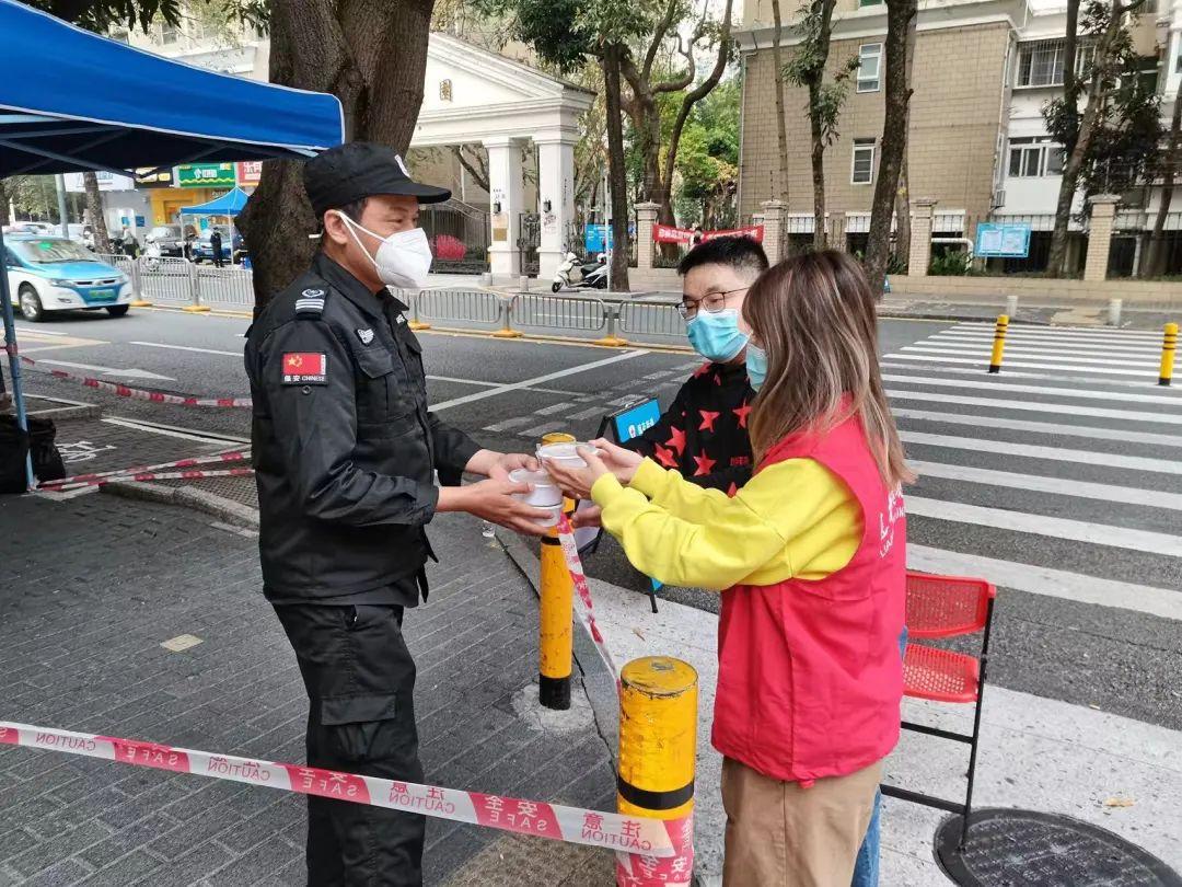 莲花街道总工会联合凤凰职工大饭堂熬制了500份姜茶和600份糖水送到核酸采样点和围栏卡口,慰问一线抗疫工作人员。冷天送姜茶、热天送糖水,时刻关注一线需求,做好“娘家人”。