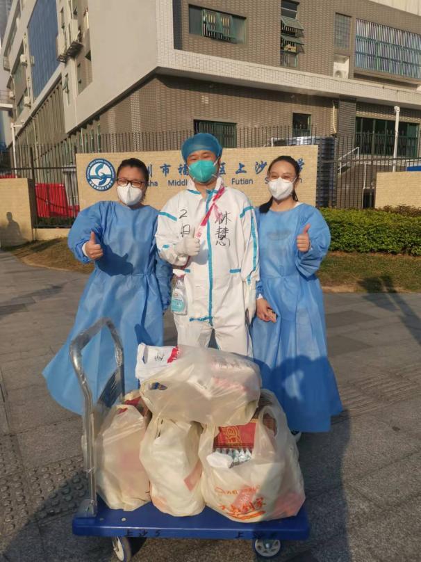 早在此次疫情伊始,福田区总工会就发出抗疫召令,半数以上工作人员积极响应,主动要求为防疫工作贡献力量。同时,防疫物资和生活用品也被送往一线。“大白”们不是抗疫路上的“孤勇者”,冲锋前行的路上还有时刻关心他们的“娘家人”。