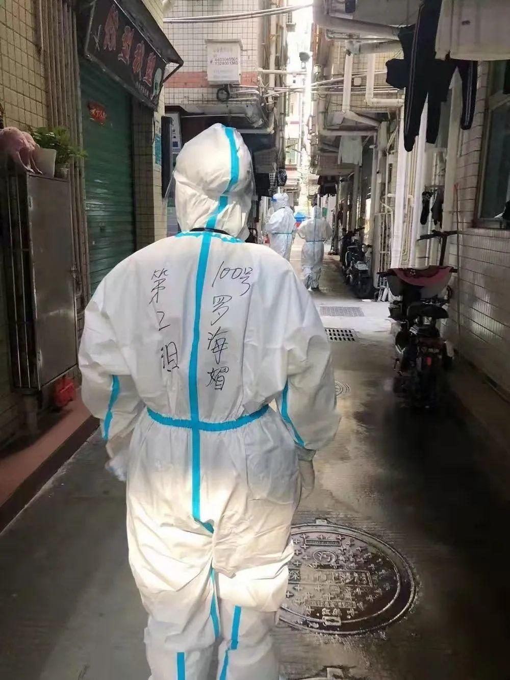 每天两点一线,在上沙村,林明燕跟随大部队早出晚归,“每一次都是挑战,这次的支援任务需要更大的体力和注意力。”作为第11班第三小组的组员,林明燕每天要负责巷道居民的核酸采样扫码、值班、疏导等工作。积极、阳光是她给记者最深刻的印象。“虽然我们每天要穿着‘大白’,挨家挨户爬上爬下,但是我们相信,在志愿者们一步一个脚印的努力下,福田终会走出疫情的阴霾。”林明燕说道。