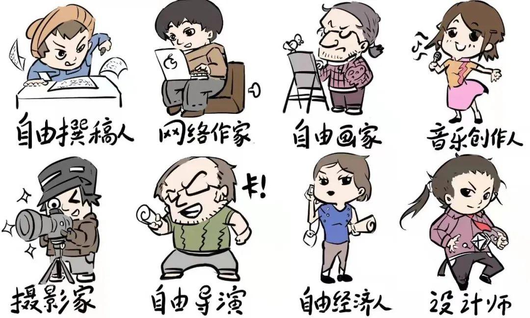 第三类:自由职业人员。指不供职于任何经济组织、事业单位或政府部门,在国家法律、法规、政策允许的范围内,凭借自己的知识、技能与专长,为社会提供某种服务并获取报酬的人员。如自由撰稿人、网络作家、自由画家、书法家、音乐创作人、摄影师、自由导演、制片人和独立演歌手、媒体与营销策划师、企业培训师、市场调研咨询师、自由经纪人、设计师、翻译、个体工程机械技术人员、电器及电子信息产品维修人员等技能型市场服务人员等。