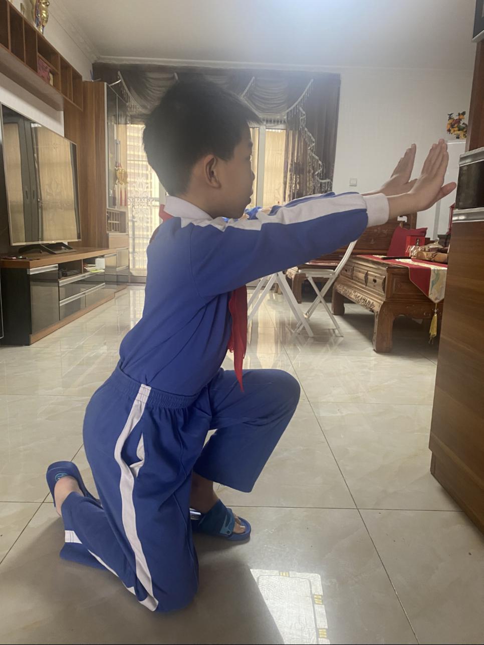 但依然在家默默穿好校服