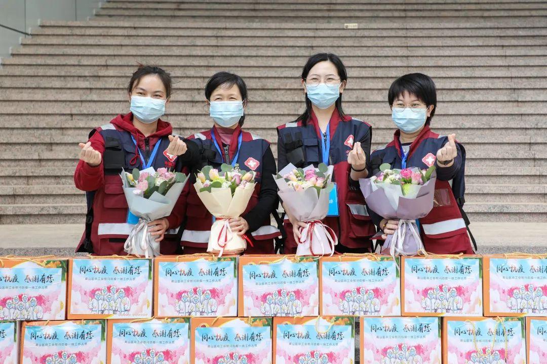 3月7日下午,南山区委常委、组织部部长王小蓉,区人大常委会副主任、总工会主席路玉萍,副区长蔡淡宏率区总工会、区妇联一行慰问疫情防控一线工作人员。