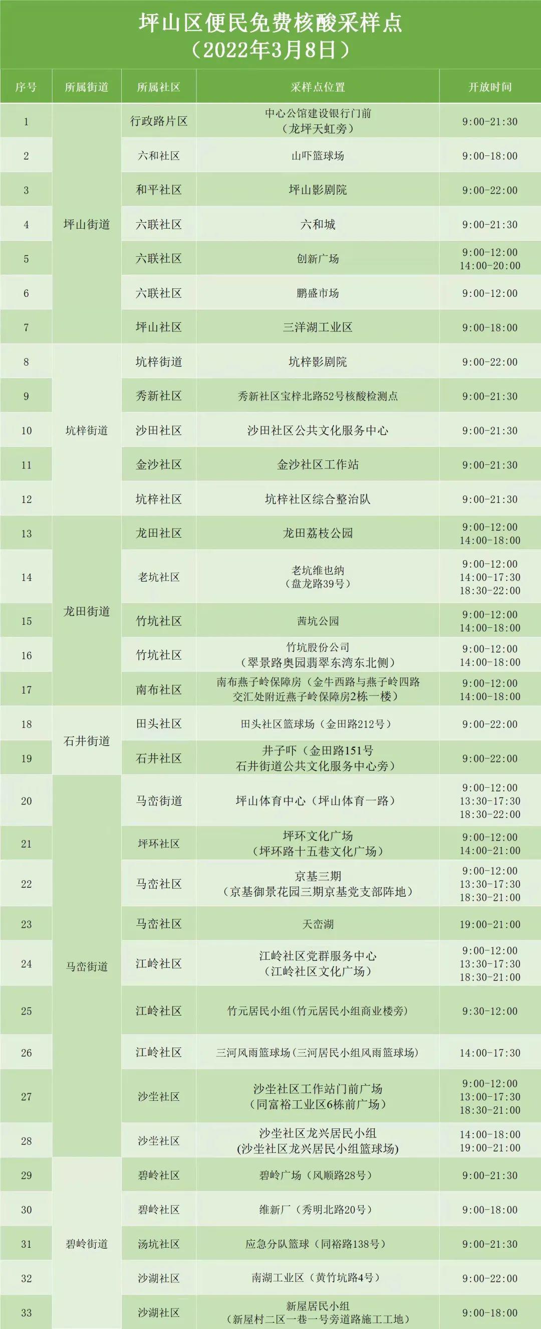 坪山区设置了多个核酸采样点