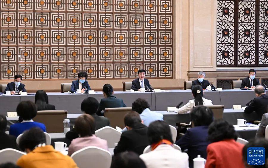 ▲3月6日,中共中央政治局常委、中央书记处书记王沪宁看望出席全国政协十三届五次会议的共青团、总工会、妇联、青联界委员并参加讨论。新华社记者 申宏 摄