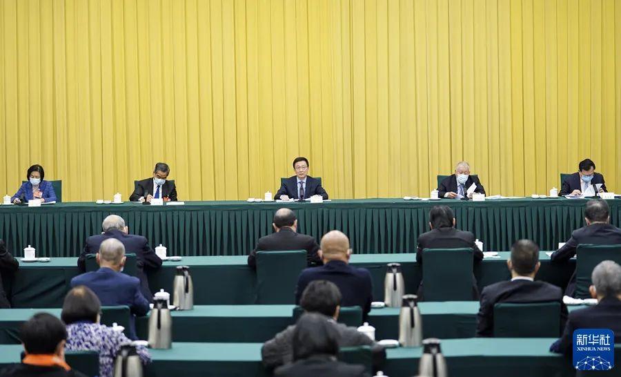 ▲3月6日,中共中央政治局常委、国务院副总理韩正看望出席全国政协十三届五次会议的港澳地区全国政协委员并参加讨论。新华社记者 殷博古 摄