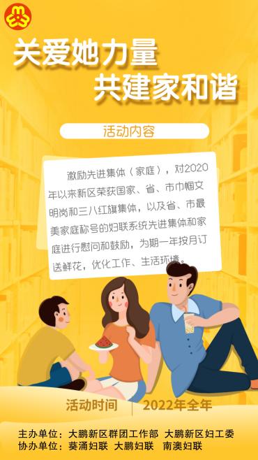 活动内容:各级妇联组织充分利用执委、文明岗、红旗手(集体)优秀团队资源,广泛发动在新区工作、居住的同志参加志愿服务。