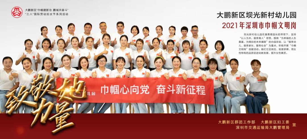 坝光新村幼儿园,坚持“以人为本,服务育人”思想,围绕“为幸福的人生奠基,为精彩的未来铺路”的办园宗旨,以“服务幼儿、服务家长、服务社会”为重点,积极开展“巾帼文明岗”创建活动。她们立足岗位、锐意拼搏,用女性特有的品质促进幼教发展,提升女性素质。