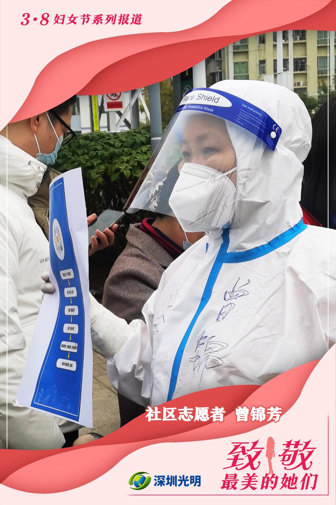 秋冬时期,正值春节,疫情卷土重来,曾锦芳没有犹豫,在本应团圆的节日里加入志愿服务行列,每天穿梭在核酸检测点的人流当中。寒潮来袭,她顶着凛冽寒风维持现场秩序、为居民答疑解惑、耐心指导群众申报信息、填写资料……