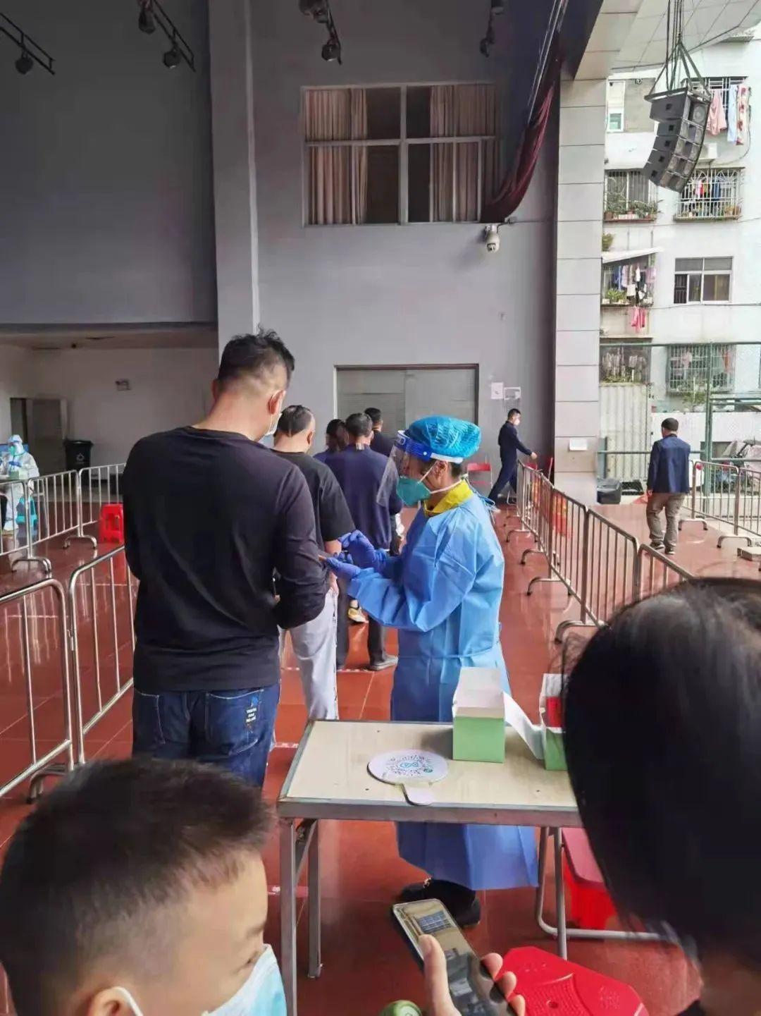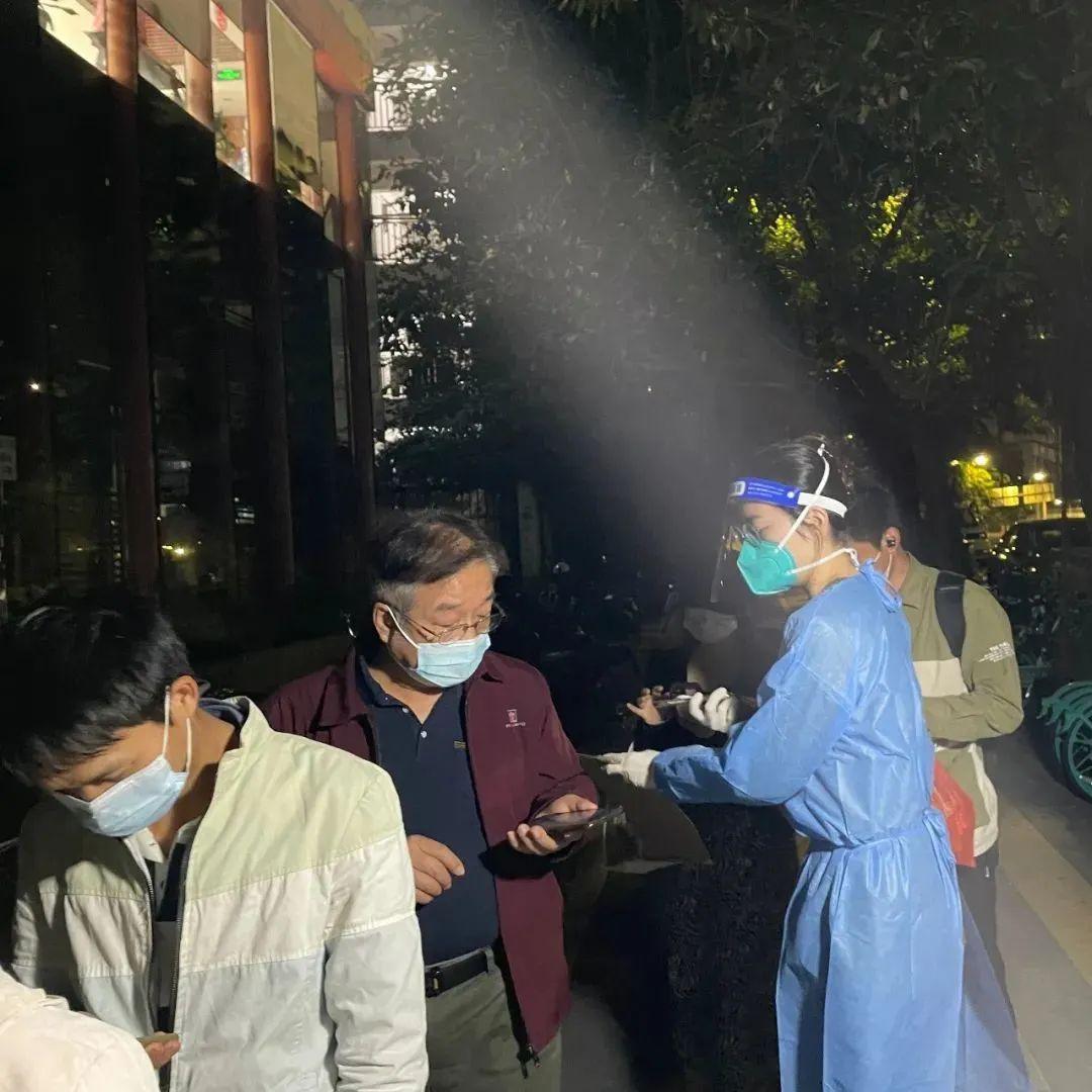 2月24日晚上,陈瑶华和同事一起进入爱榕园管控区支援核酸采样工作。第一次穿上防护服的她感觉呼吸困难,心也紧张得砰砰跳个不停。但当居民走进核酸检测采样点,她感觉满满的勇气又回来了。