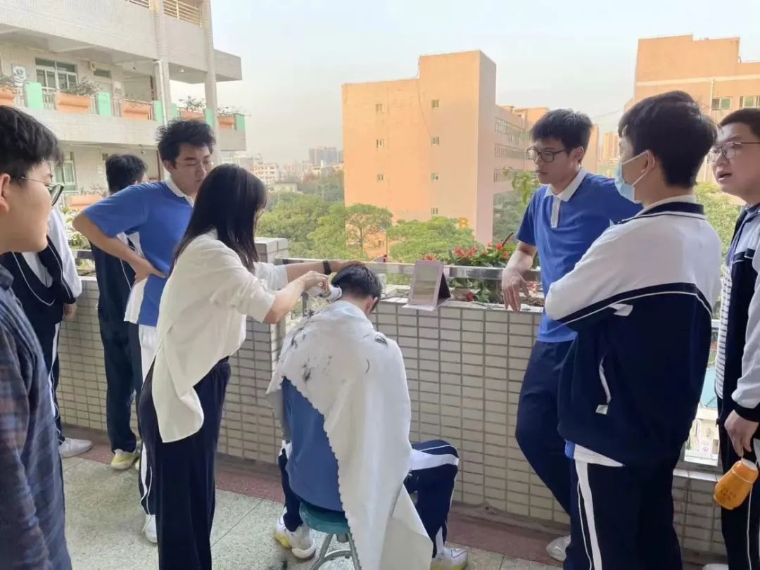 此外,高三师生住校奋战之时,西乡中学蔡景贤校长化身为“Tony老师”,带领学校行政人员为高三师生解决“头”等大事。崛起实验中学高三地理学科李洁云老师也化身最美发型师小姐姐,为同学们精心修剪“二月二”专属龙抬头发型。