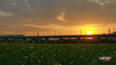 田野列车,花海掠过,开往春天的列车,充满生机与希望奔赴远方。仿佛置身于电影画面,令人久久不能忘怀。