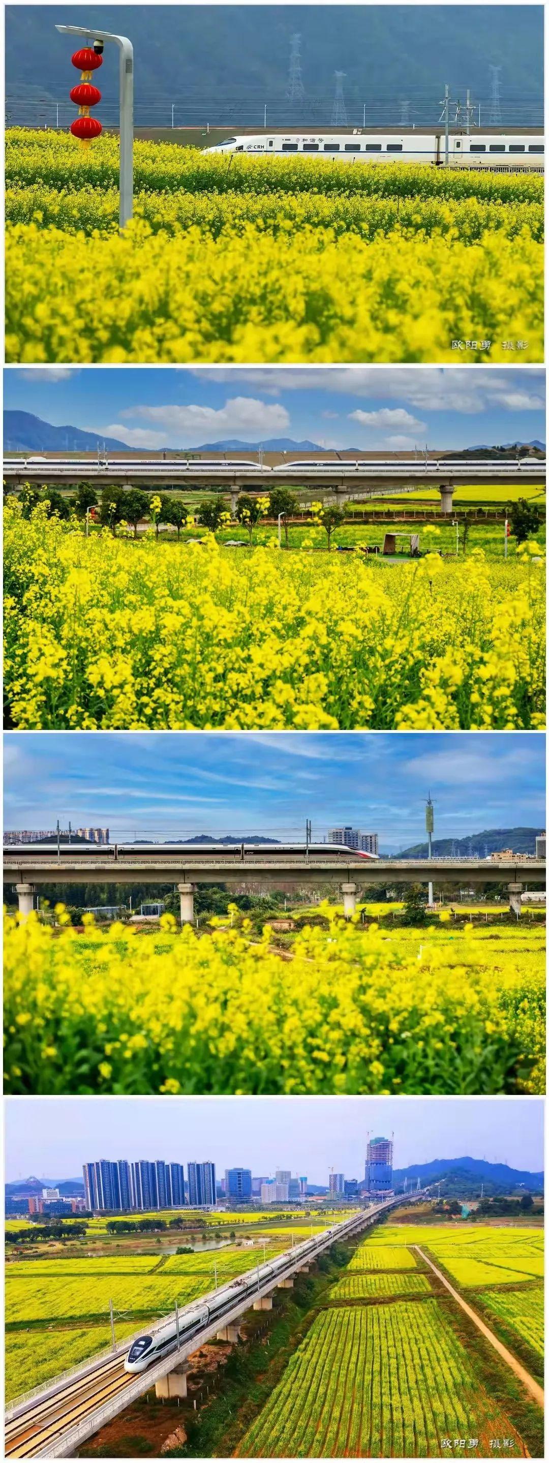 要是此时能坐在车厢里,望窗外成片黄灿灿的油菜花海,一定会感觉无比幸福。
