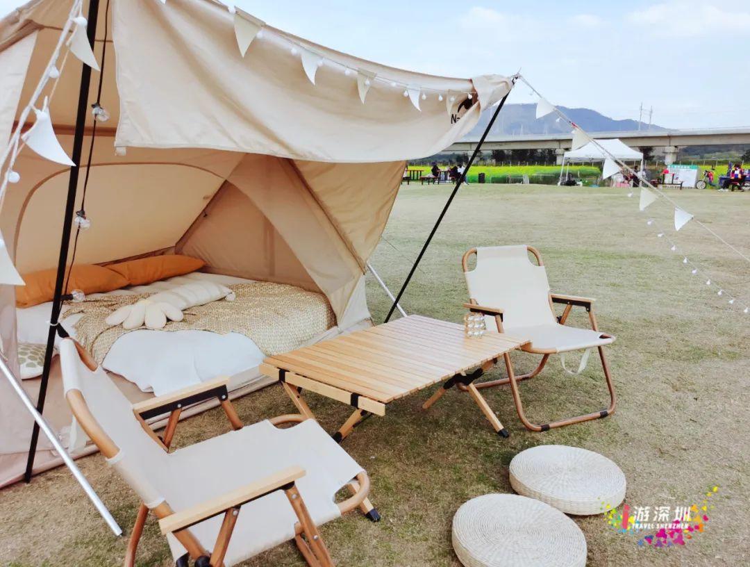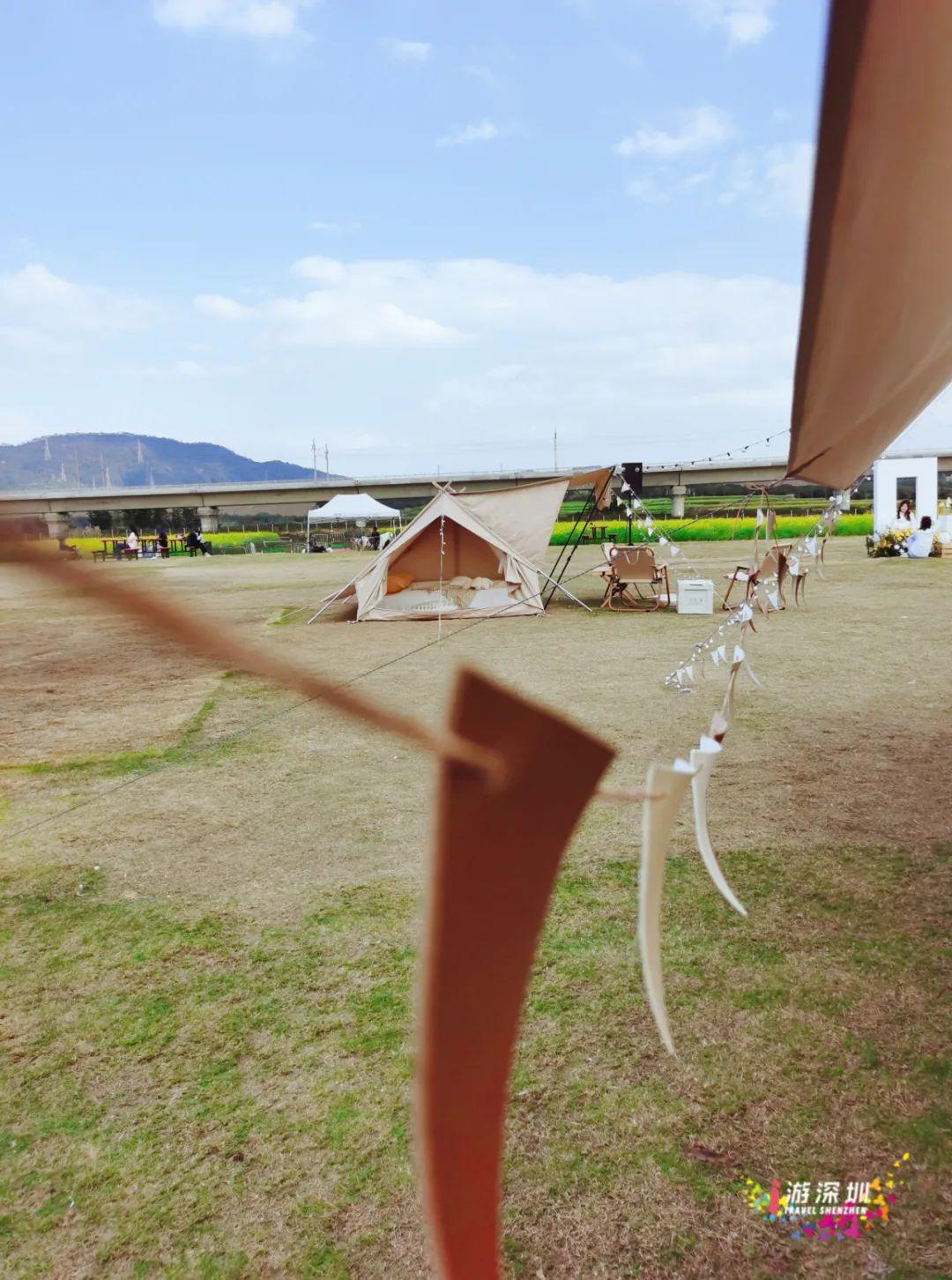 油菜花海旁的大草坪上,小编给你挖到了一个更小众更好玩的地方,帐篷营地。