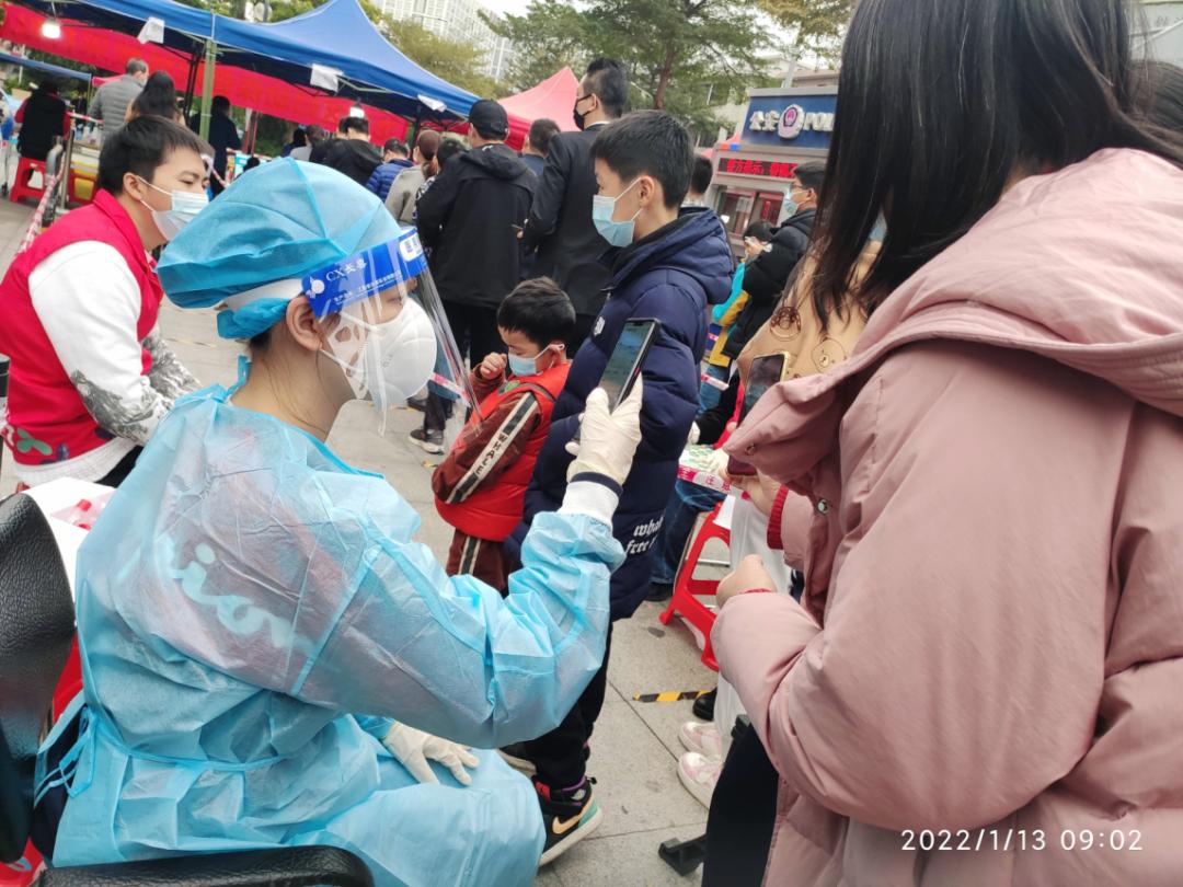 原计划期待的寒假已来,龙城街道新天地幼儿园的黄宇丹老师心想可以好好在家陪六个月的宝宝了。然而临近期末,深圳疫情突然严峻,教师们争先恐后报名支援,黄宇丹老师也多次主动参加万象天成核酸检测点的支援活动,成为了一名志愿者。