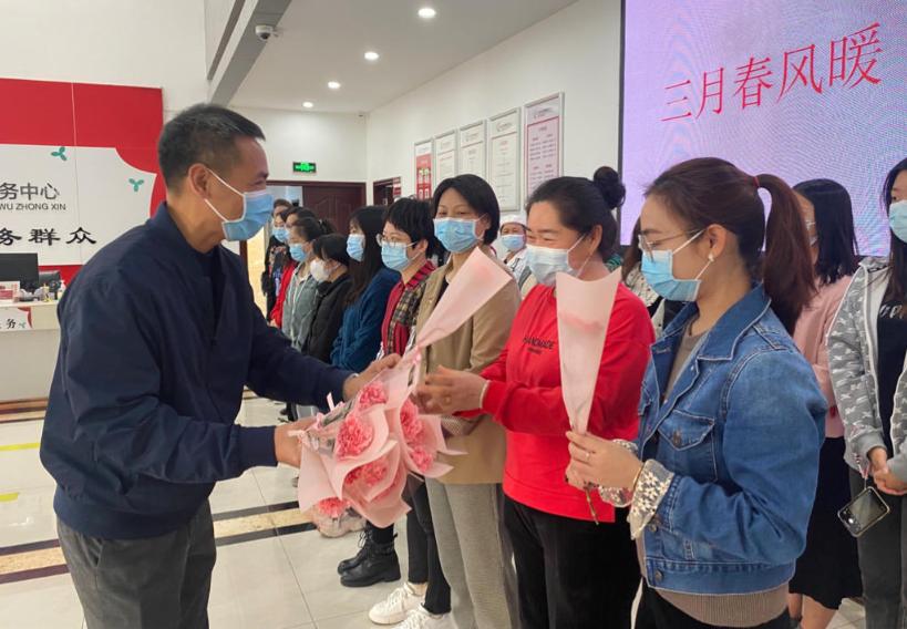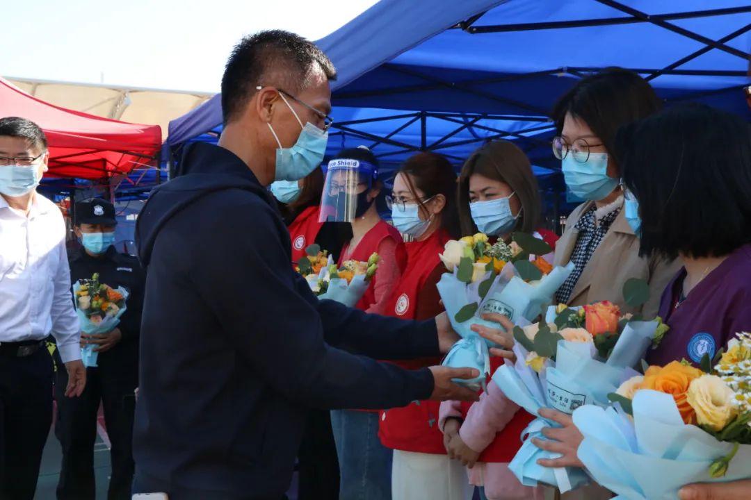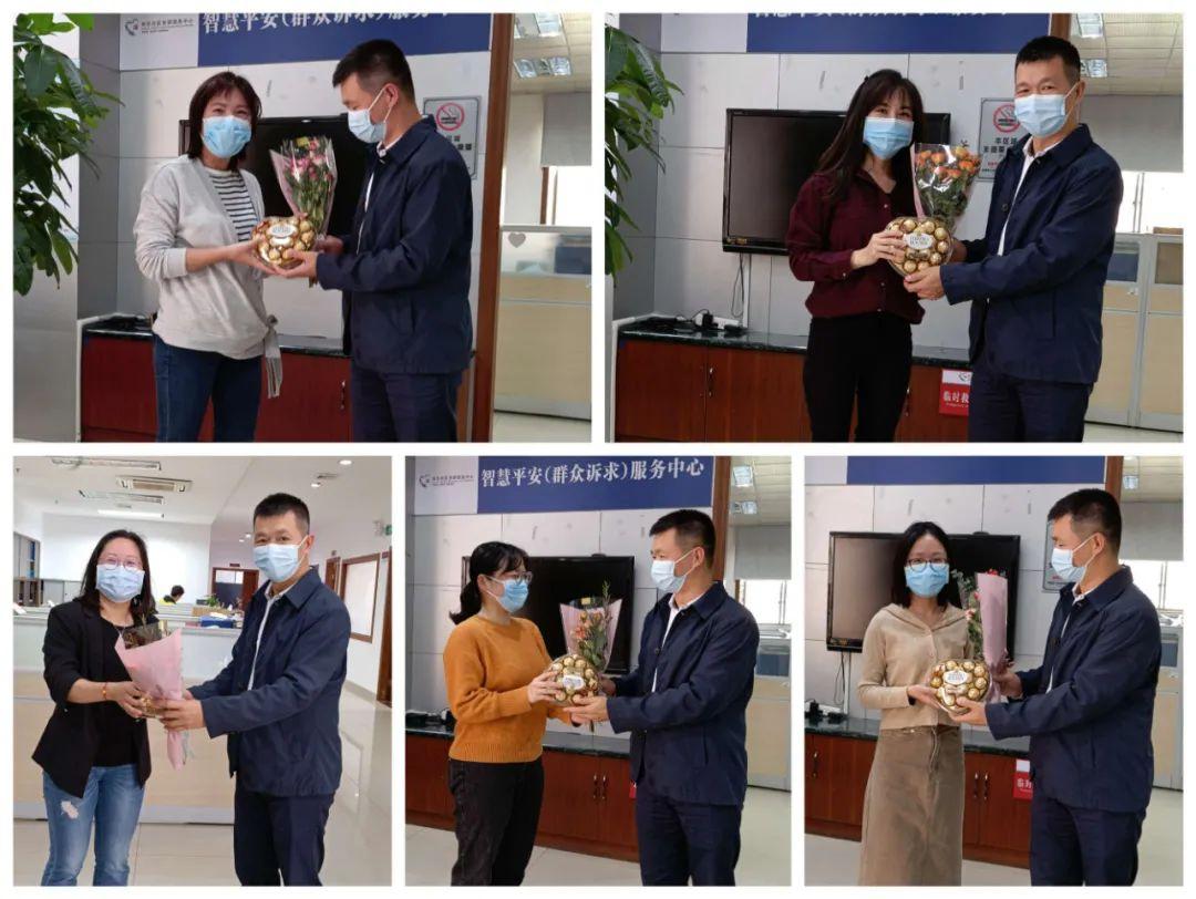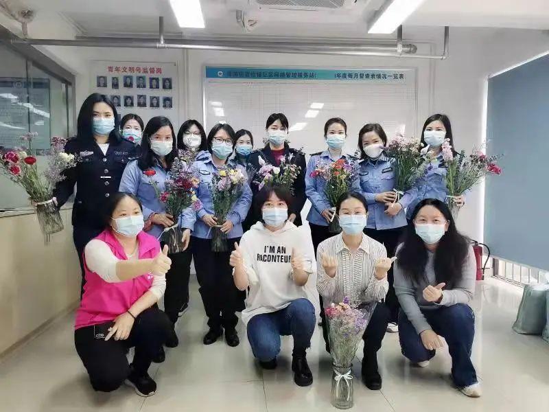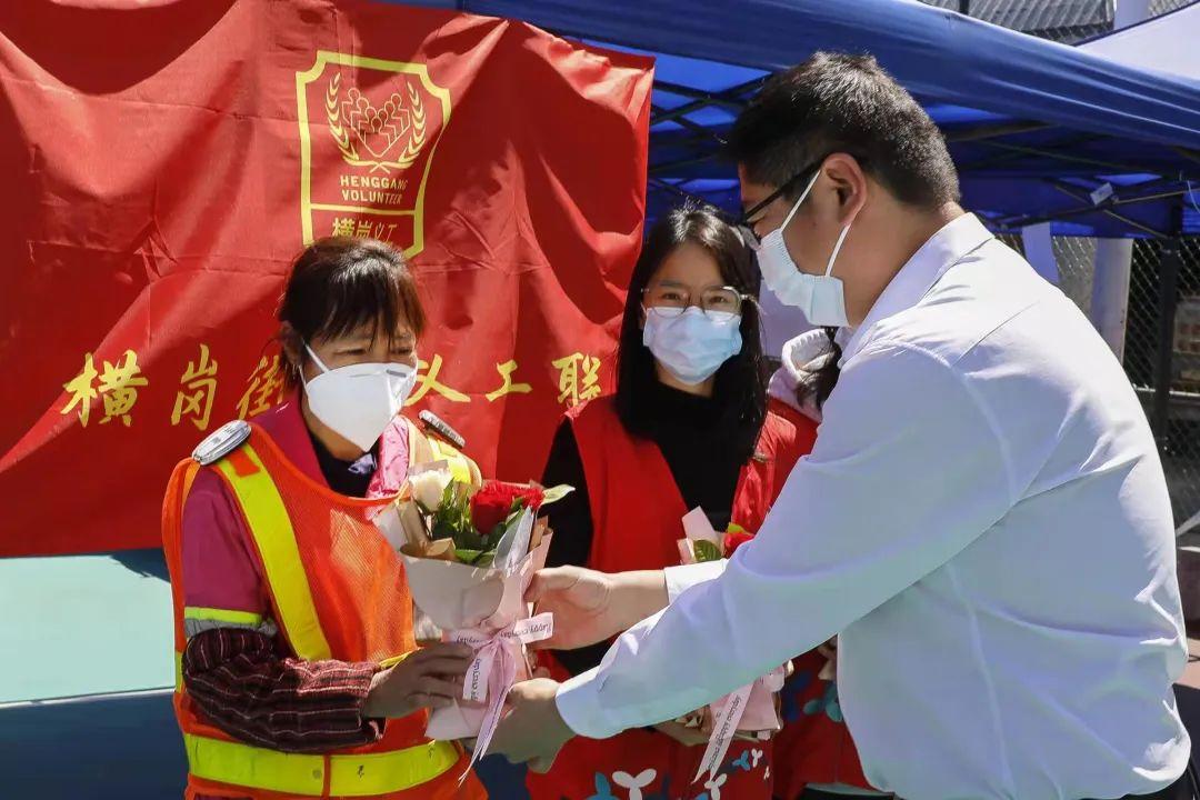 六约社区党委携手社区妇联开展“三月春风暖,鲜花送巾帼”活动,将每一枝代表着幸福的花朵送给了参与辖区抗疫工作的一线巾帼志愿者、妇女干部们,为她们送去了节日的问候,祝福她们“节日快乐!”幸福的笑容充盈在每位妇女们的脸上。