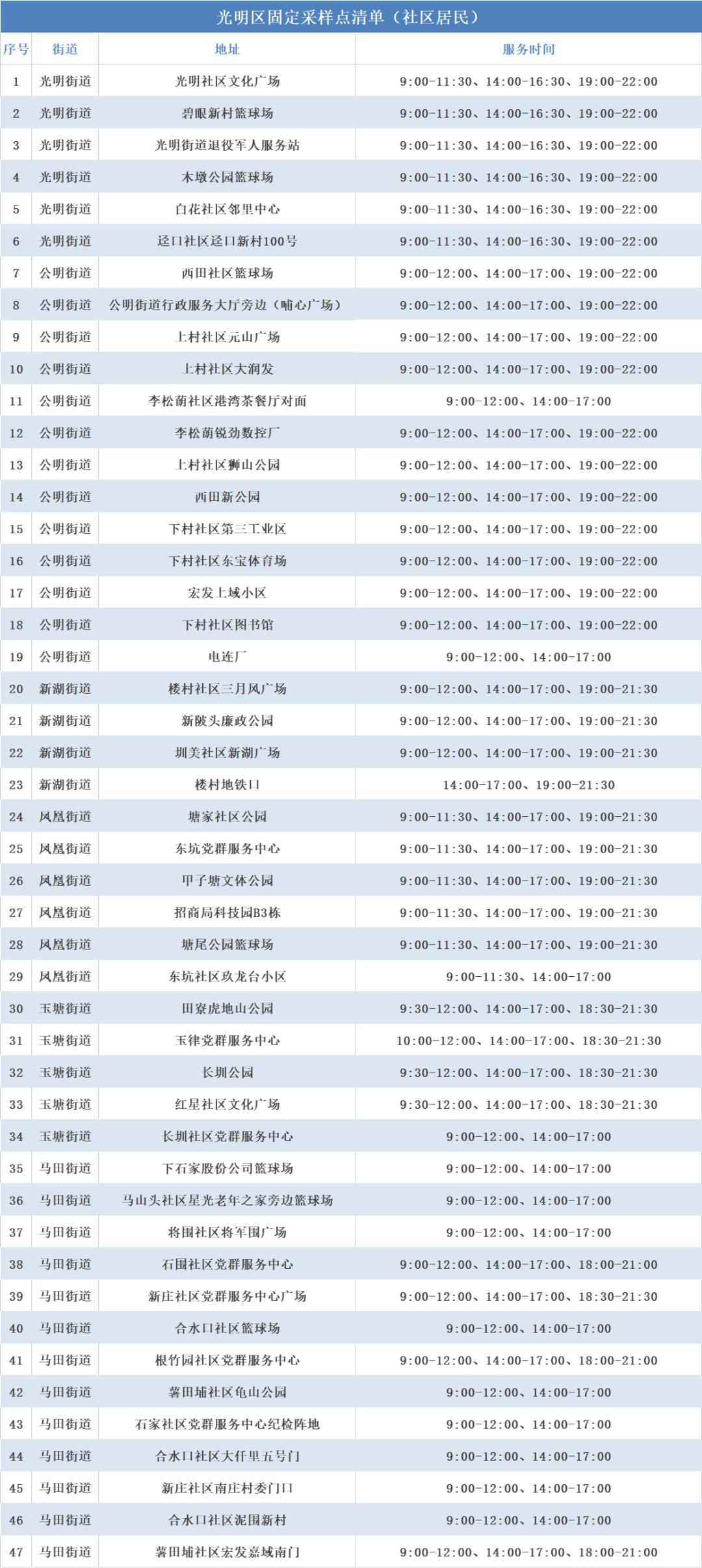 光明区免费核酸采样点汇总已更新