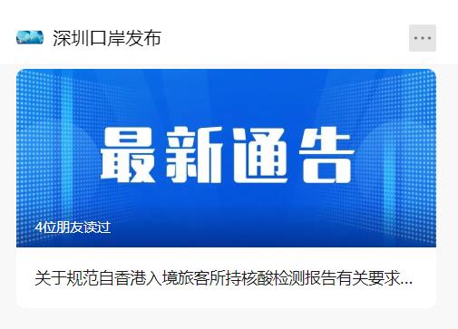 “深圳口岸发布”发布最新通告