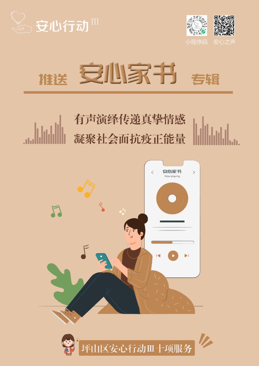 征集隔离人员、抗疫一线工作人员与亲属之间的书信,制作“安心家书”,通过有声演绎传递真挚情感 ,凝聚社会面抗疫正能量 。